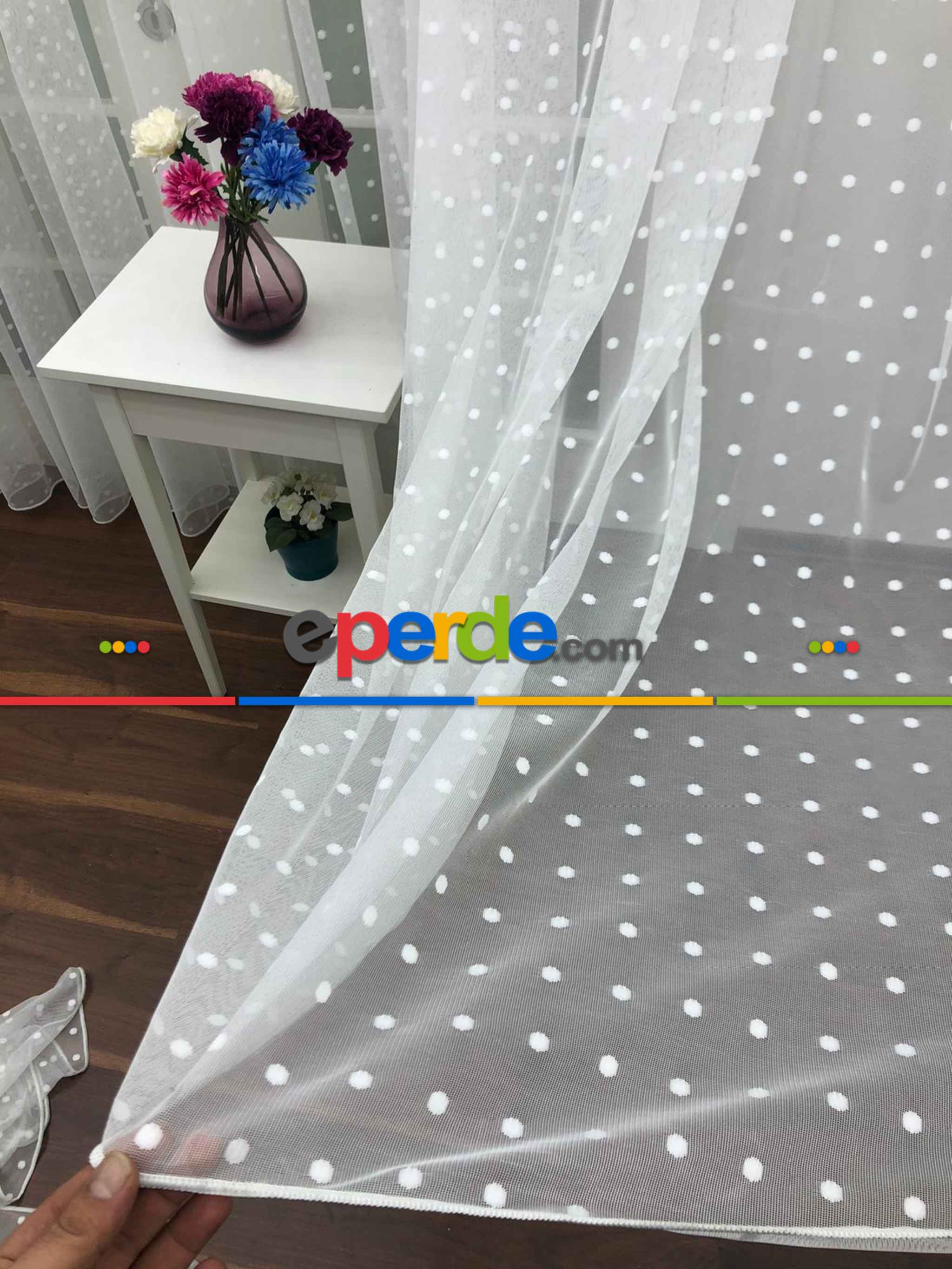 Pakistan | Puantiyeli Spor Desenli Tül Perde- Ekru - Kurşunlu Tül » Eperde