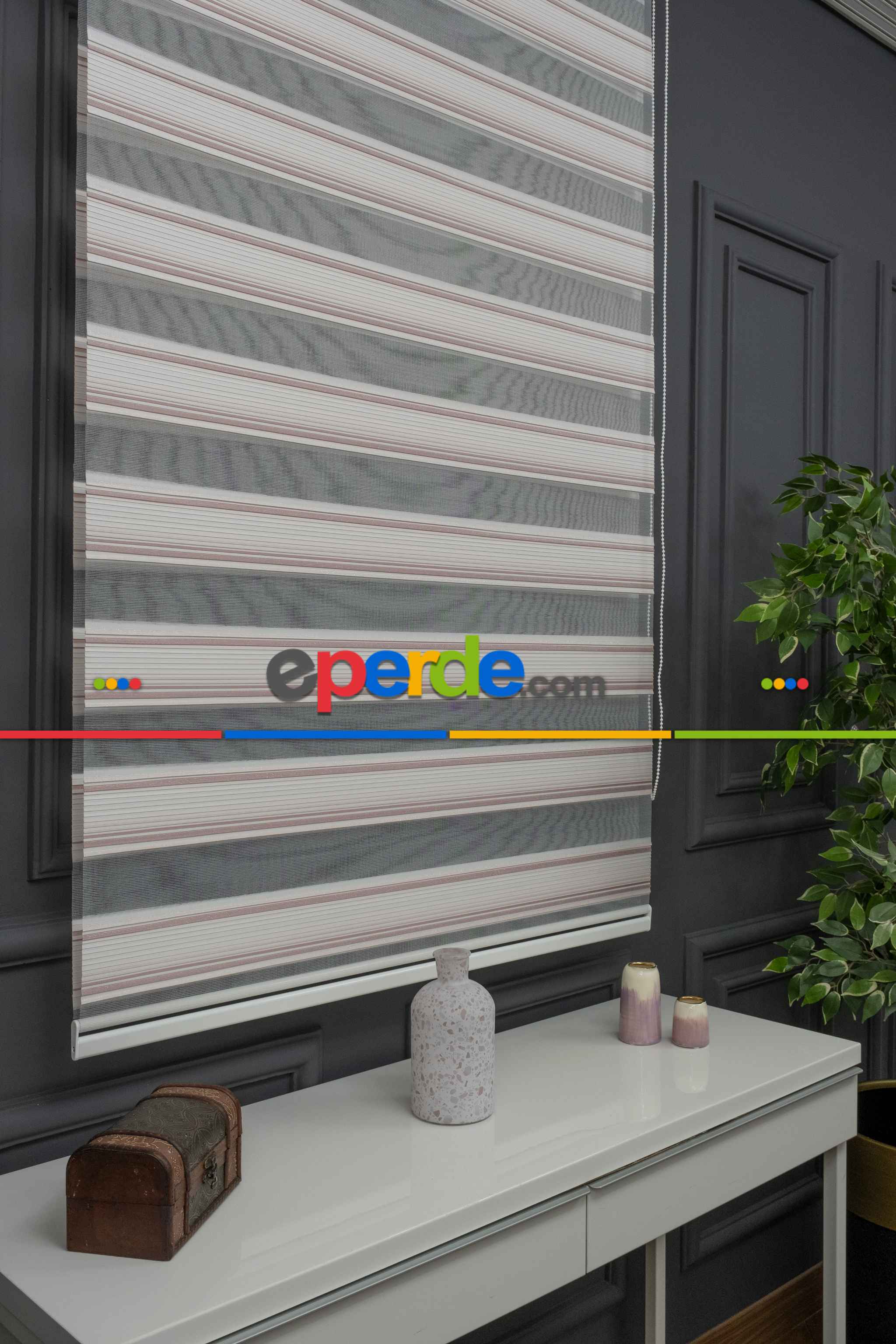 Pudra Pembe Zebra Perde - Yarım Pilise - Gümüş Simli Renk Geçişli Zebra Perde Ürün Açıklaması