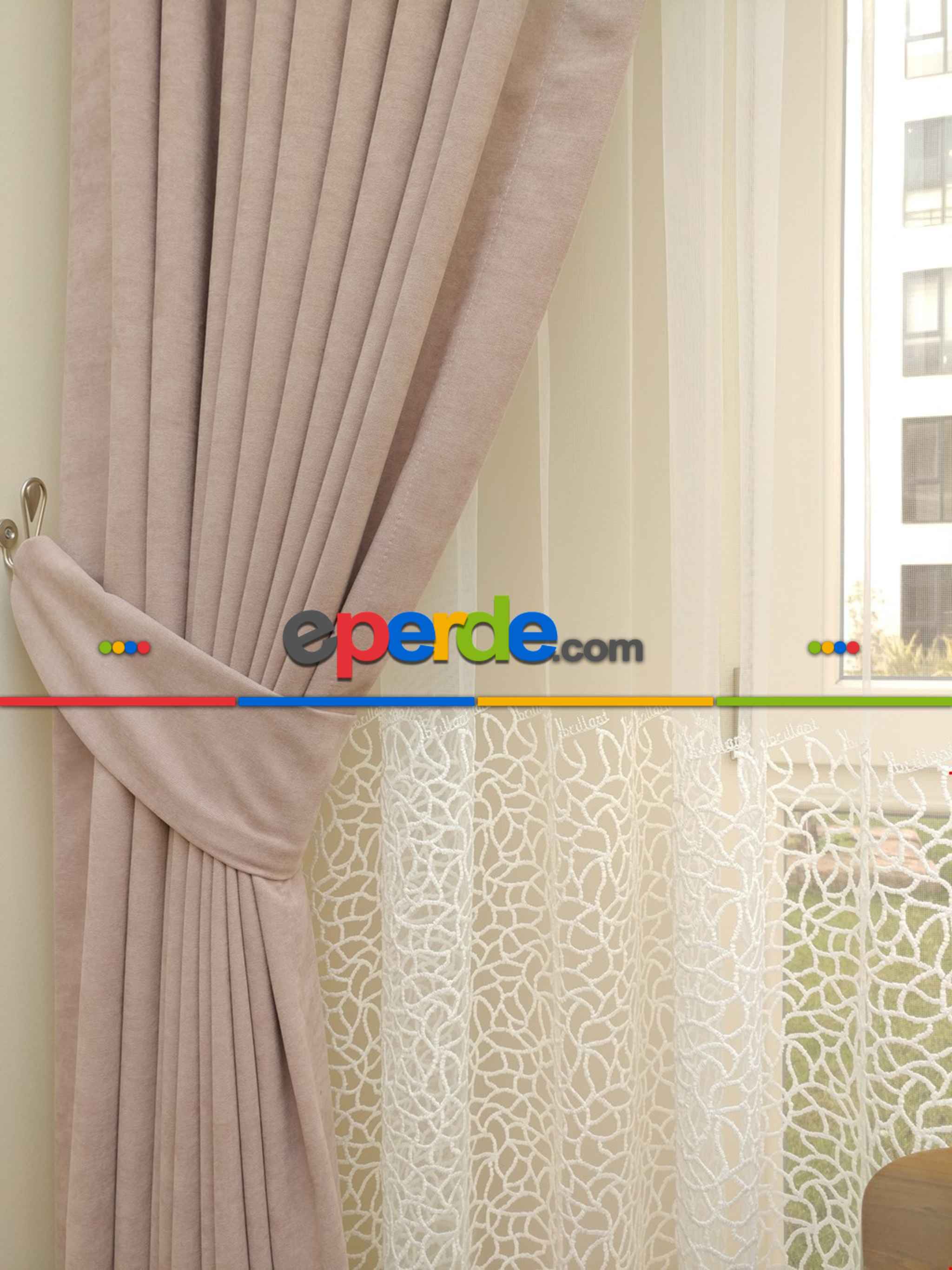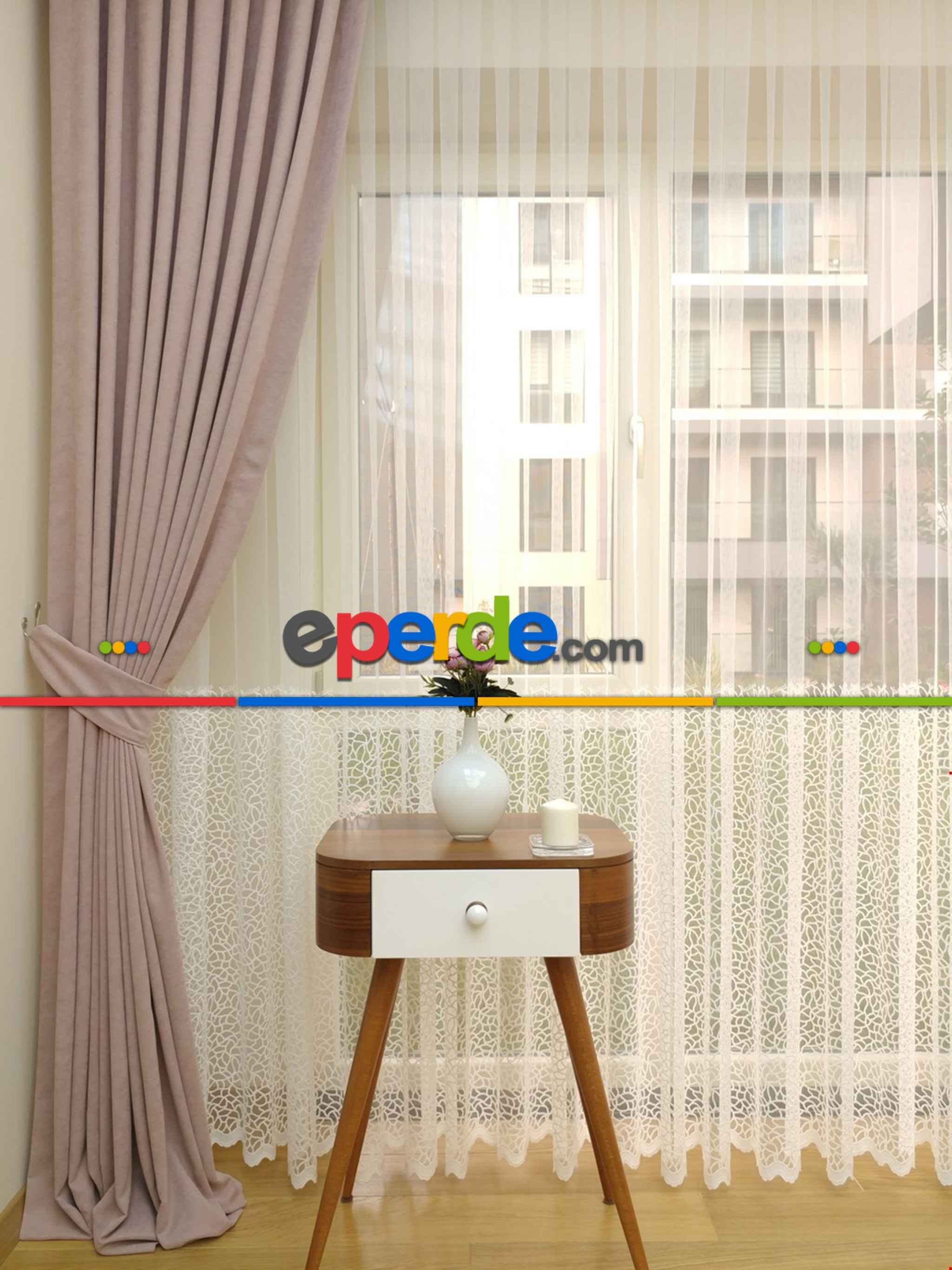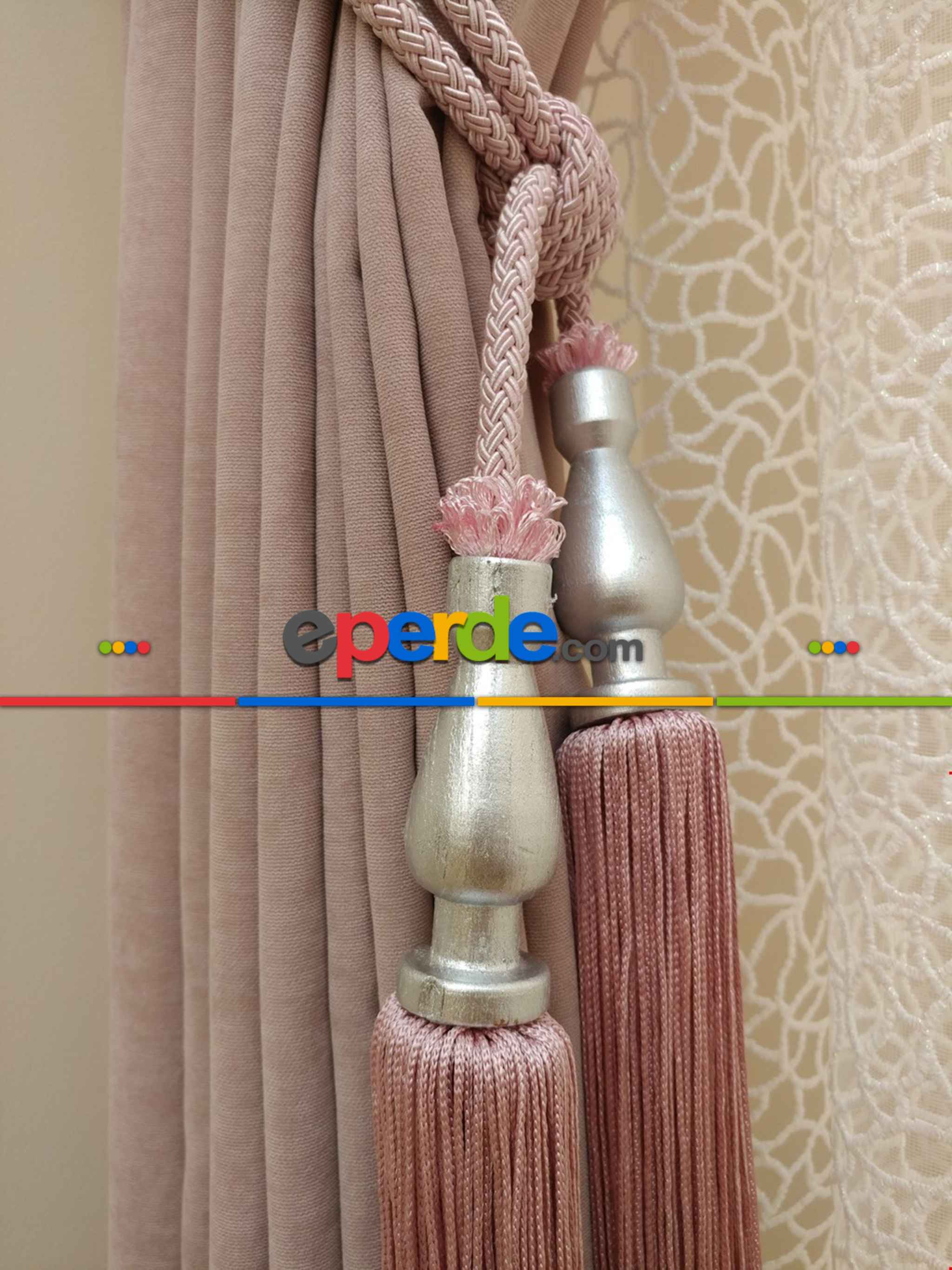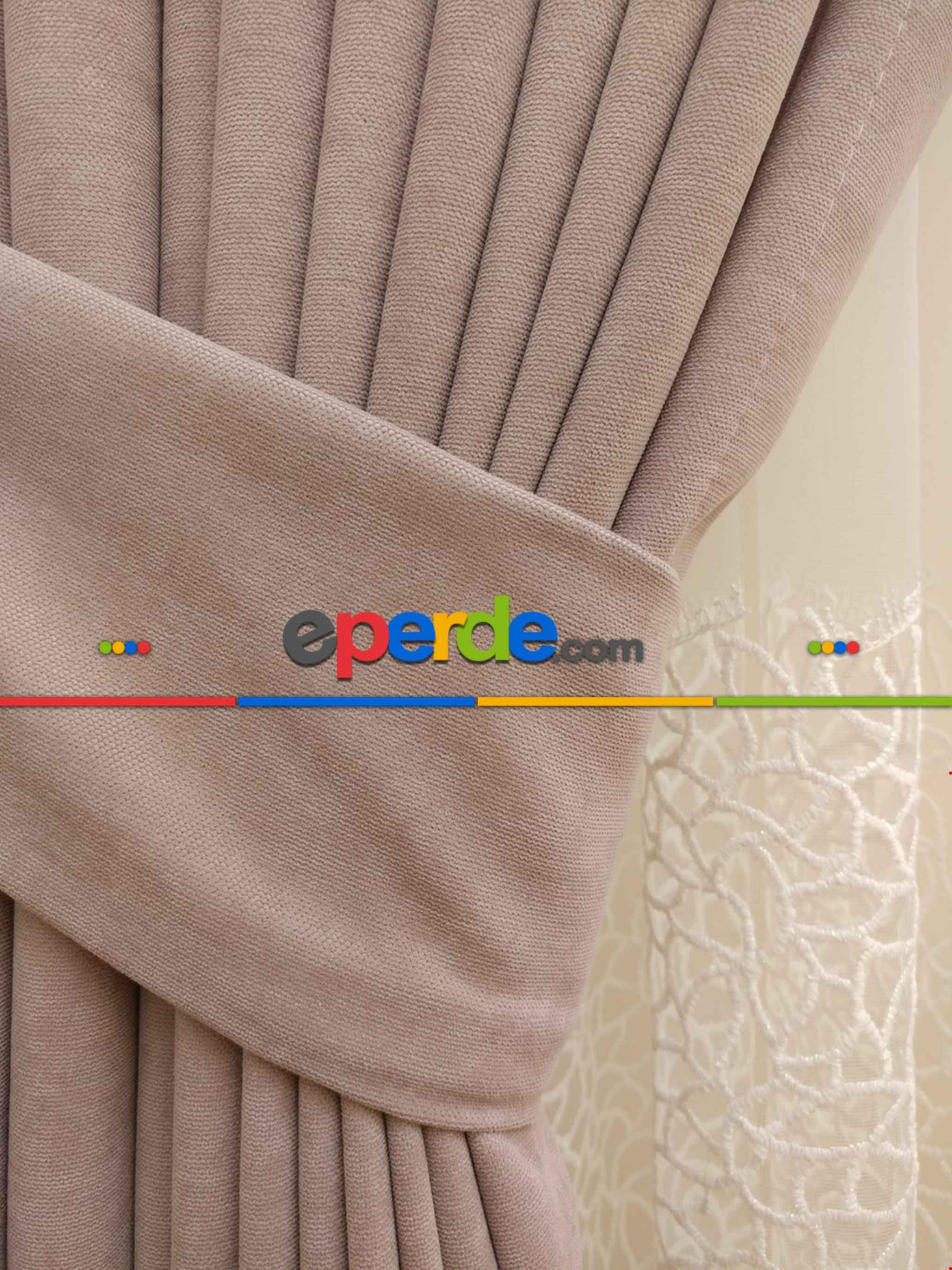 Pudra Pembesi- Düz Fon Perde ( Dökümlü Fon Perde)- Pudra