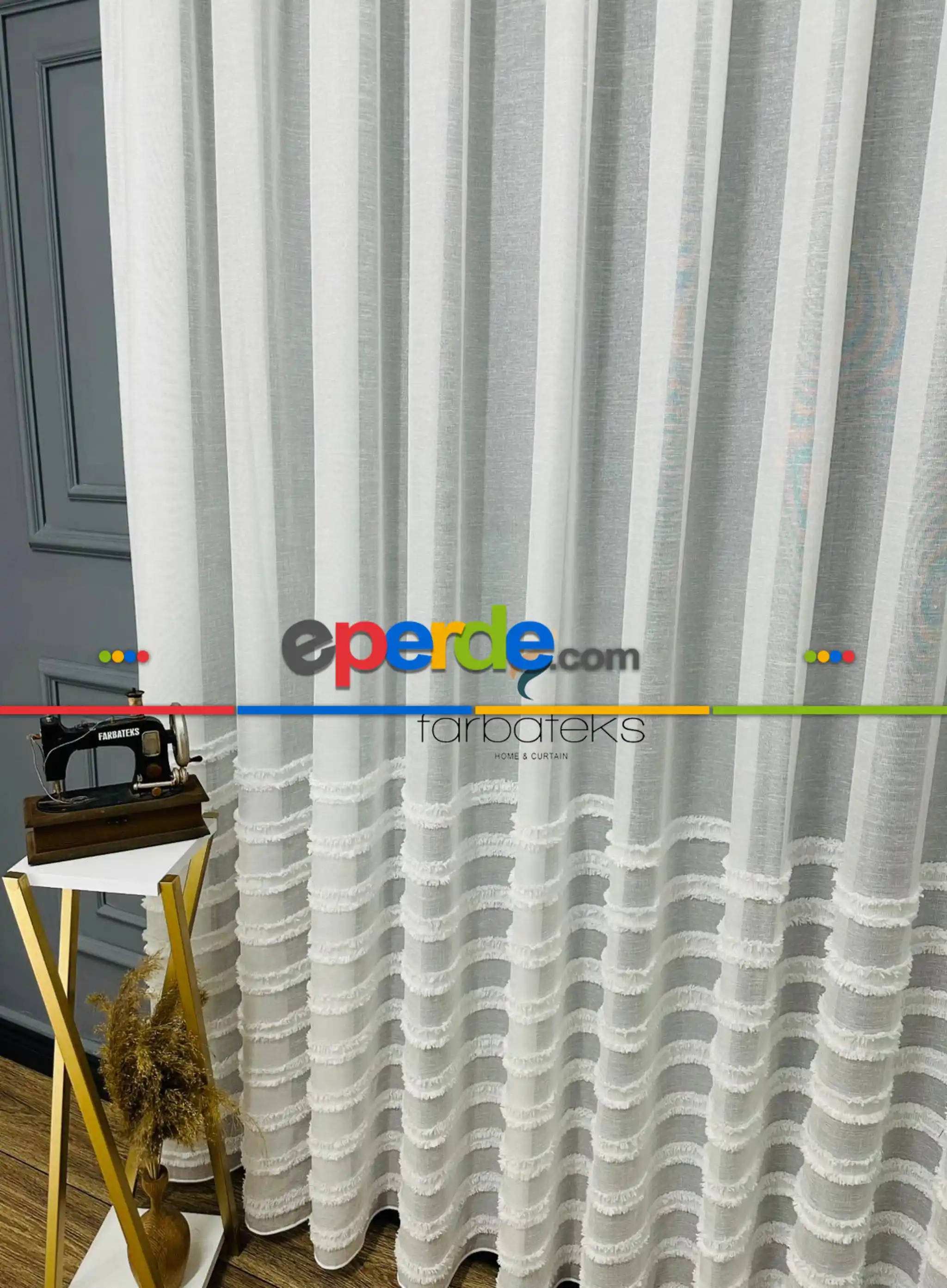 Puf Puf Ponponlu Saçaklı Tül Perde