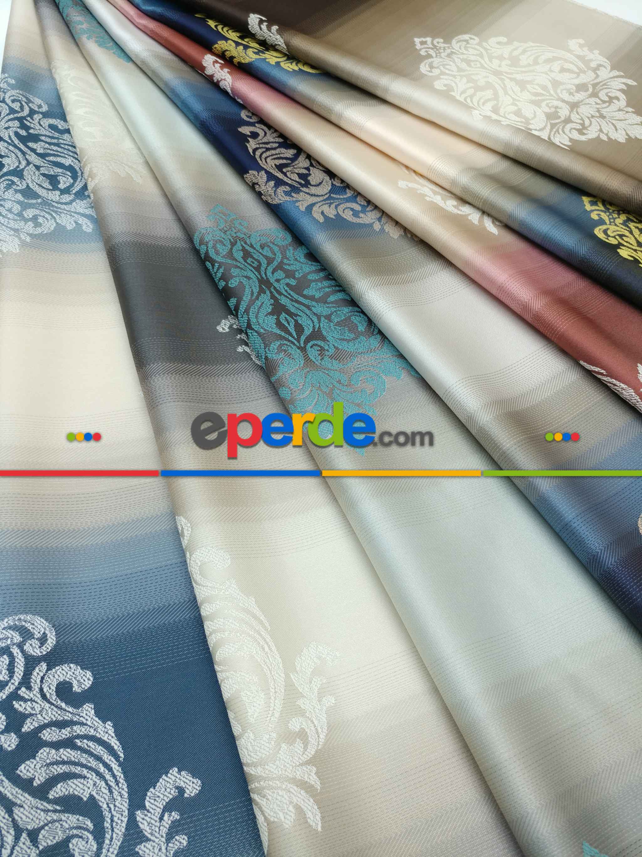 Renk Geçişli Jakar Desenli Salon Fon Perdesi - Turkuaz - Füme - Vizon- Bej-füme-turkuaz Ürün Açıklaması