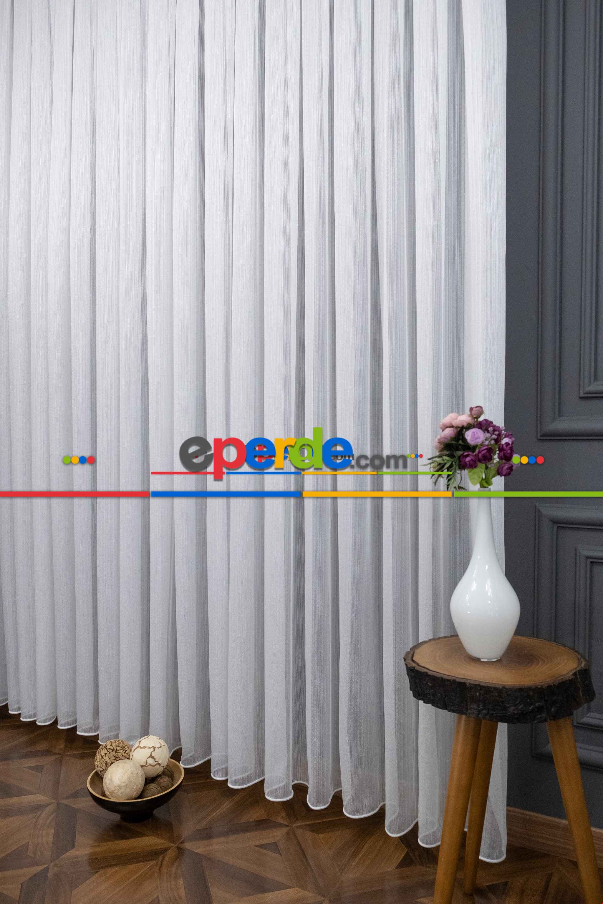 İngiltere | Salon - Ekru Kırık Beyaz Çızgili Tül Perde - Yüksek Kalite Sugar - Kurşunlu Tül » Eperde