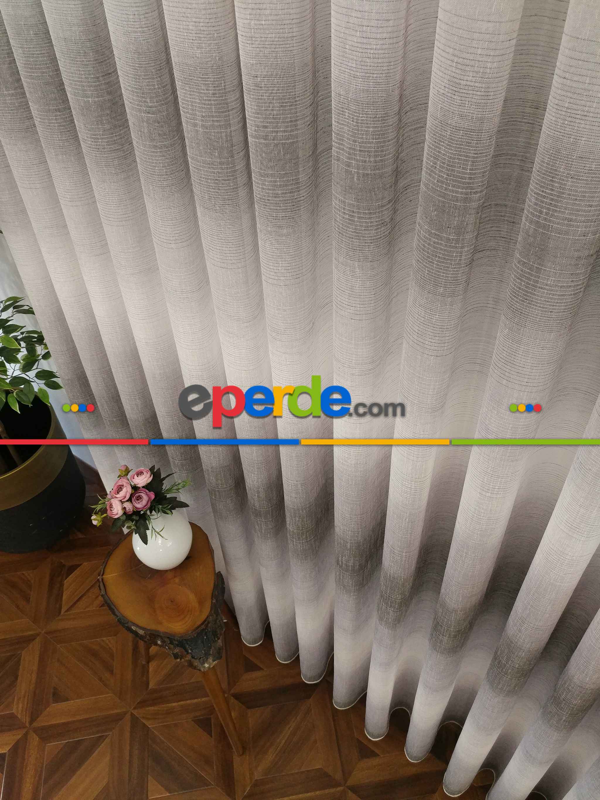 KKTC | Salon Keten Tül - Keten Dokulu Degrade Renk Geçişli Tül - Ütü İstemez- Gri-füme-antrasit-ekru » Eperde