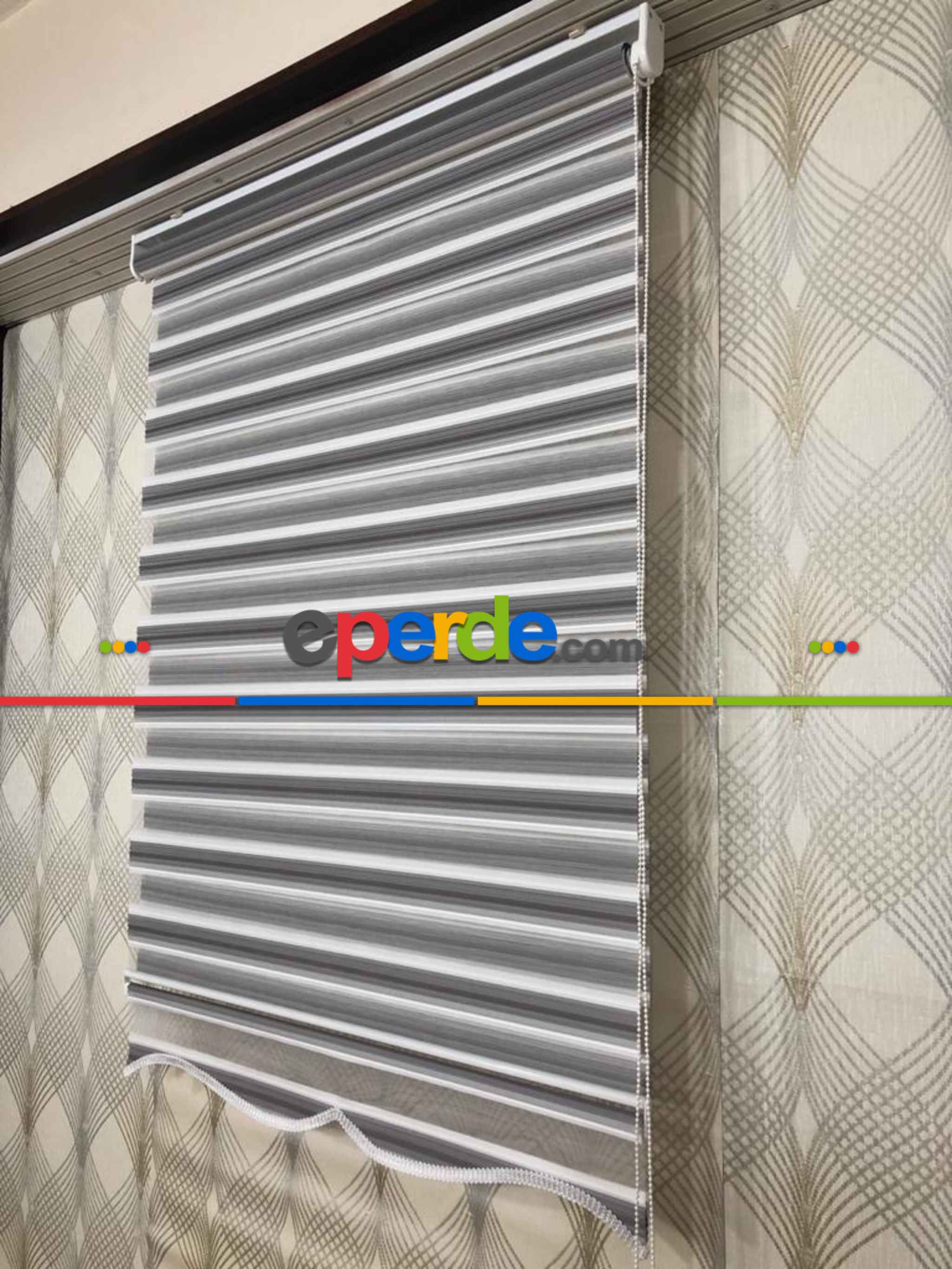Salon Zebra - Jakarlı Zebra Perde Bdz-03- Gri-Füme-Antrasit-Krem Açık Ürün Açıklaması