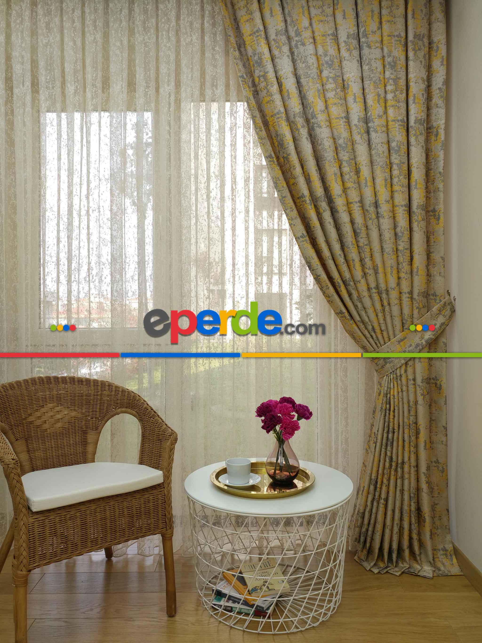 Sarı Bej Jakar Fon Perde (150)- Sarı » Eperde
