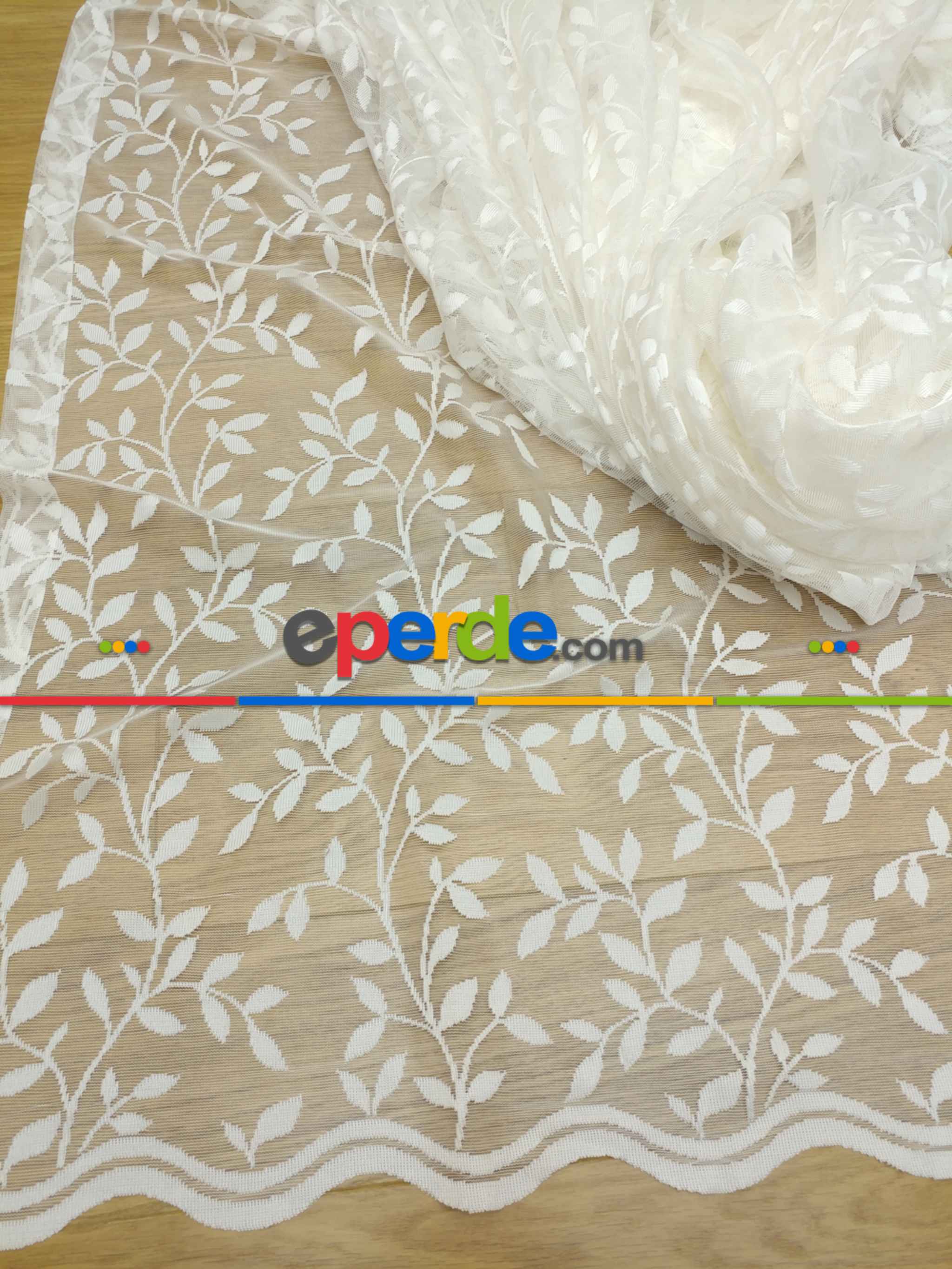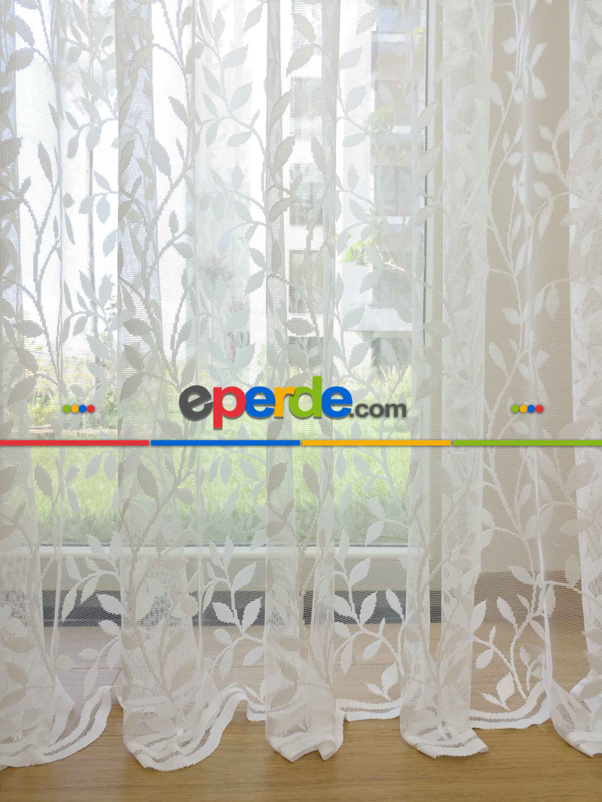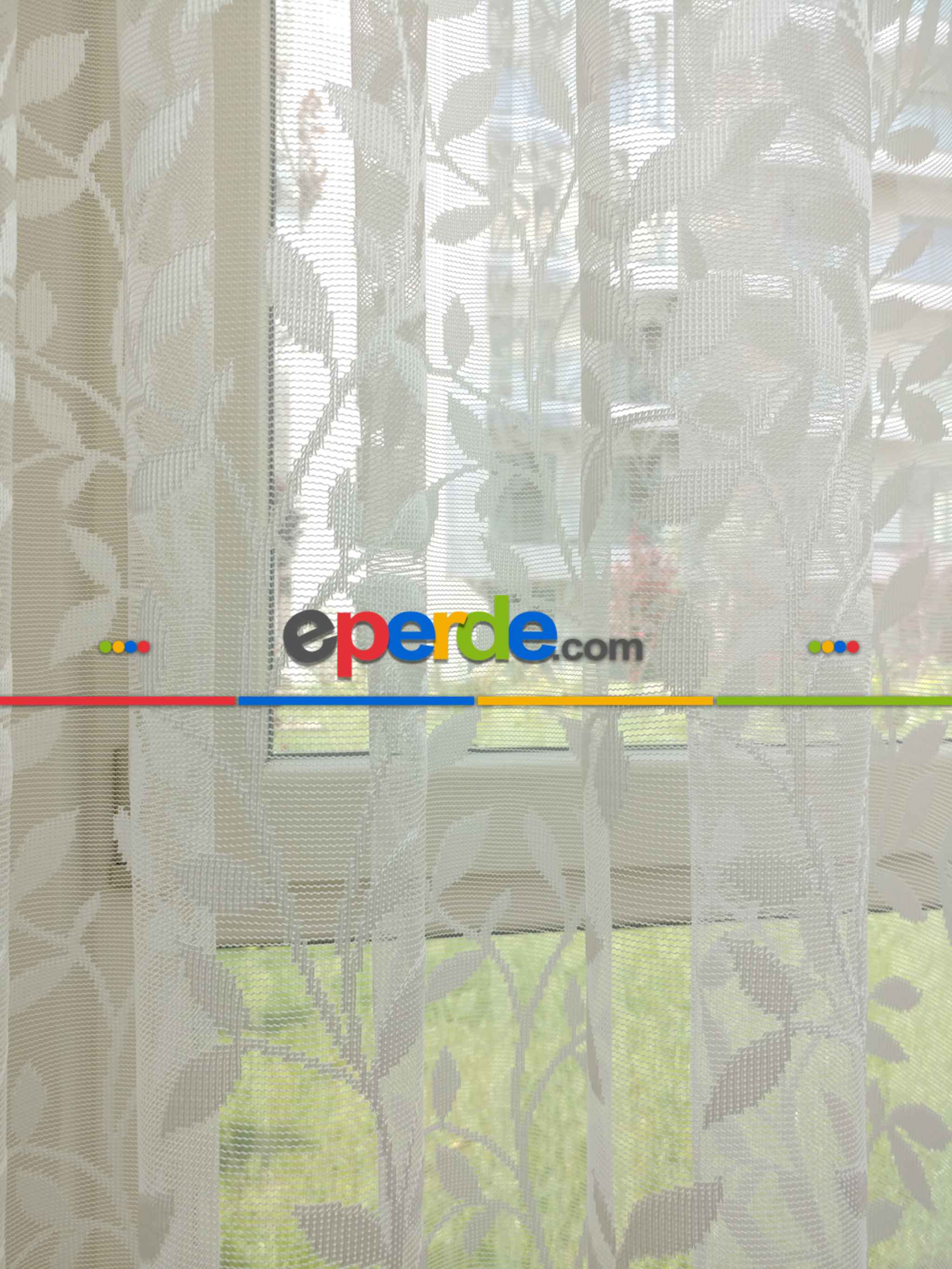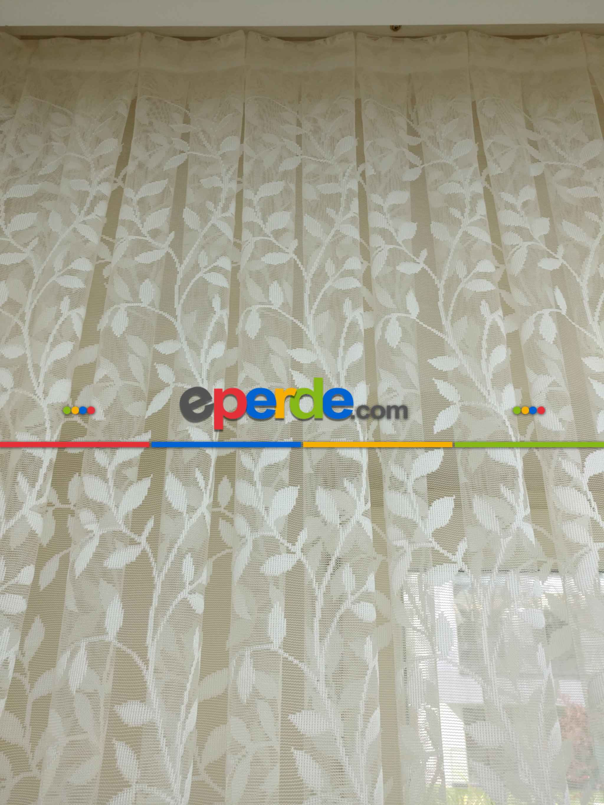 Sarmaşık Yaprak Desenli Özel Örme Dokulu Tül Perde - Ekru » Eperde
