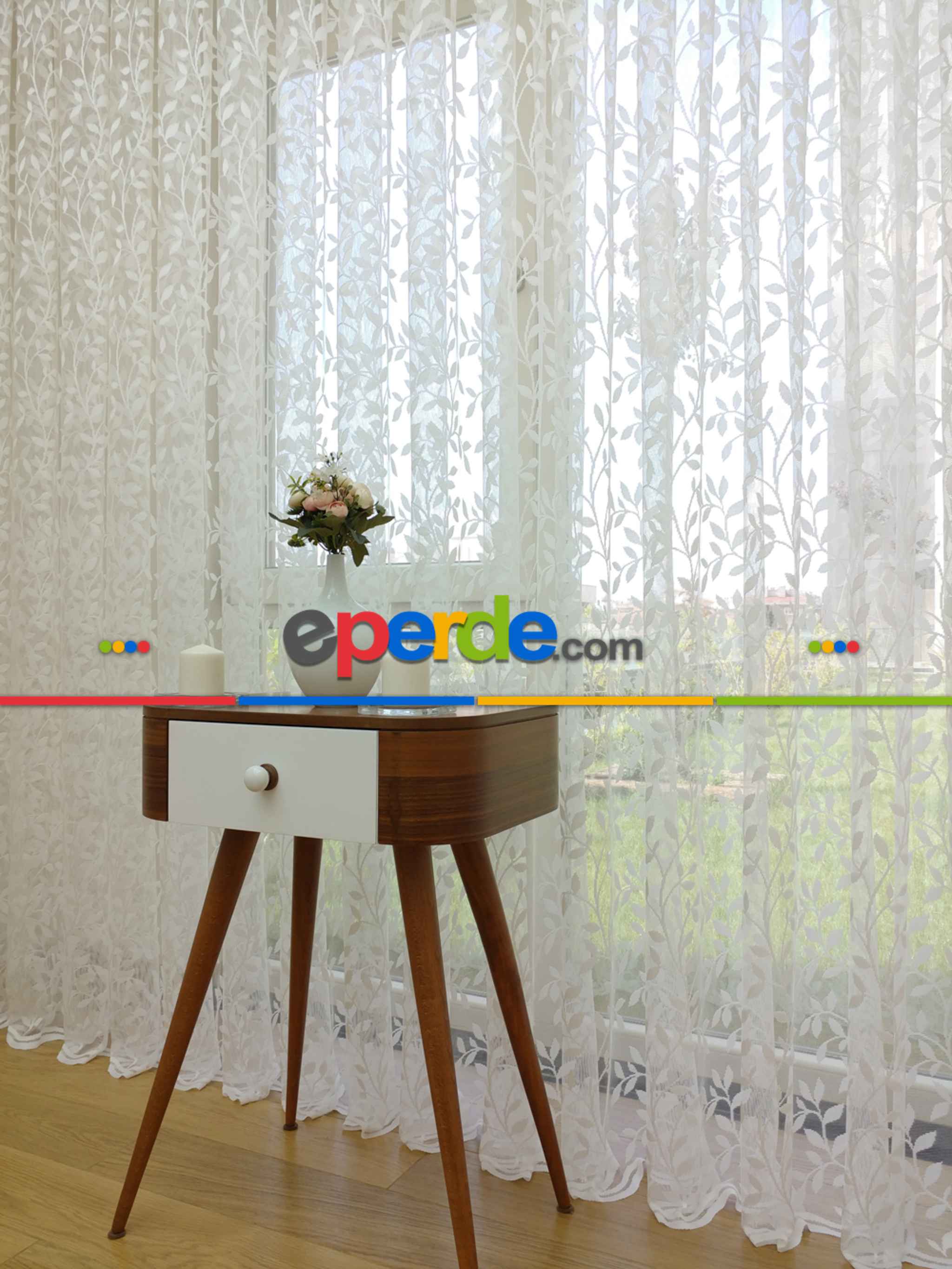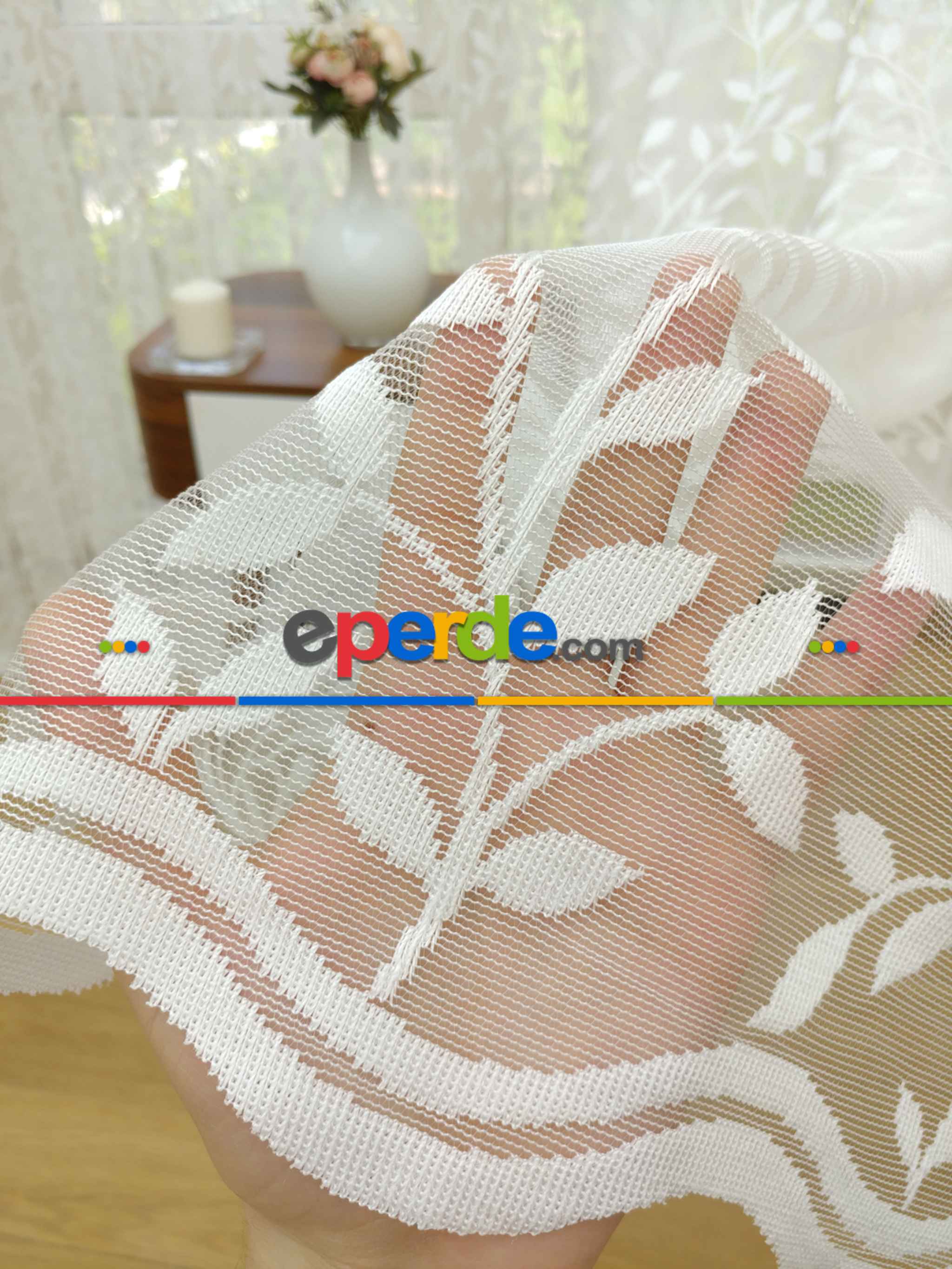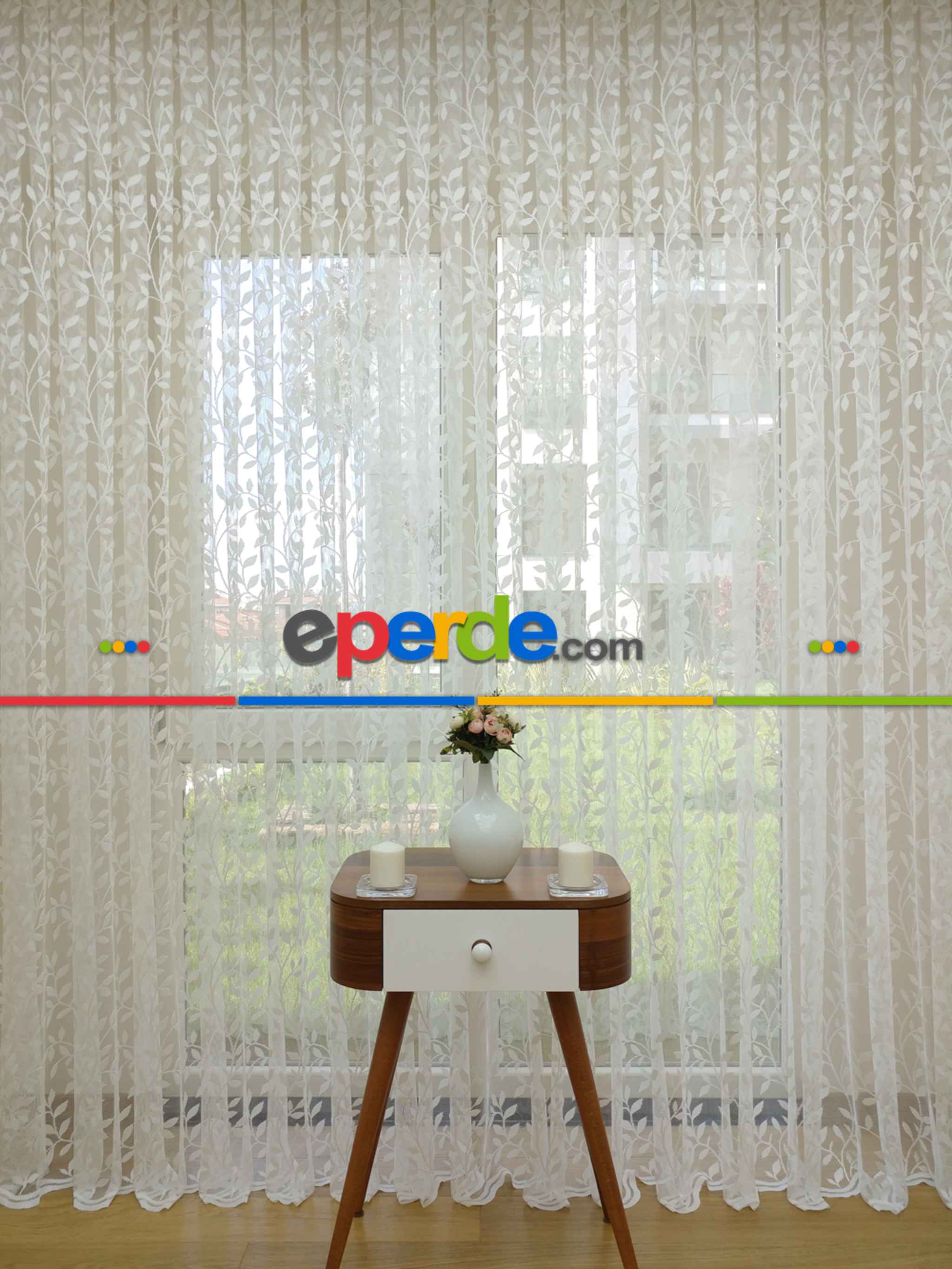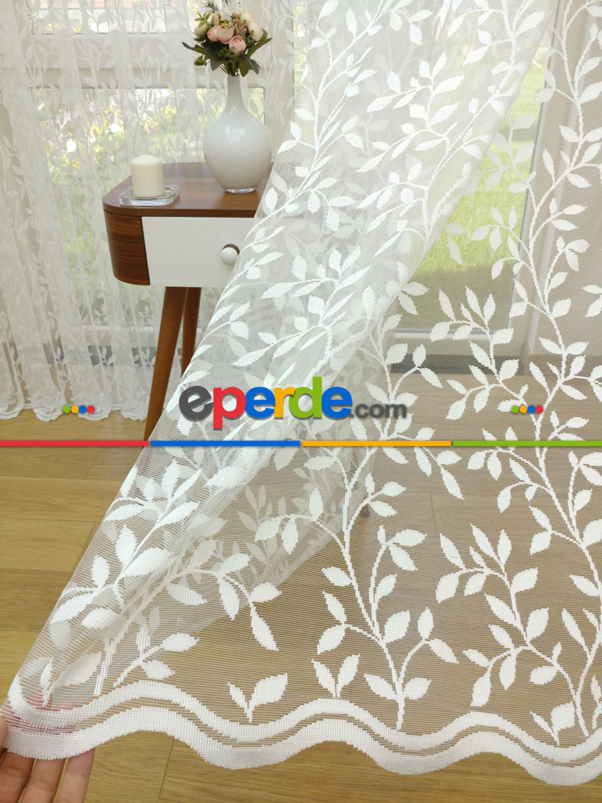 Sarmaşık Yaprak Desenli Özel Örme Dokulu Tül Perde - Ekru » Eperde