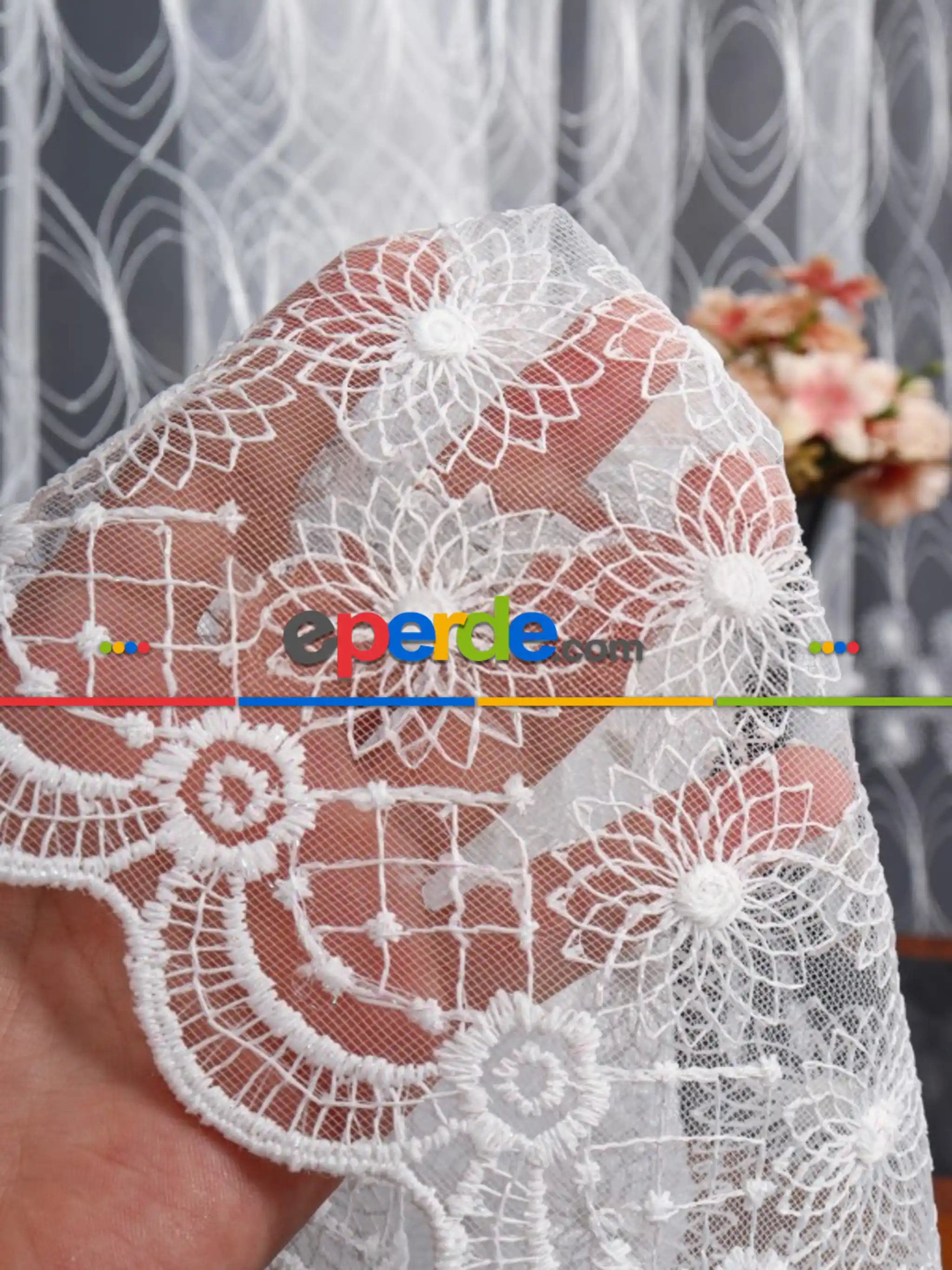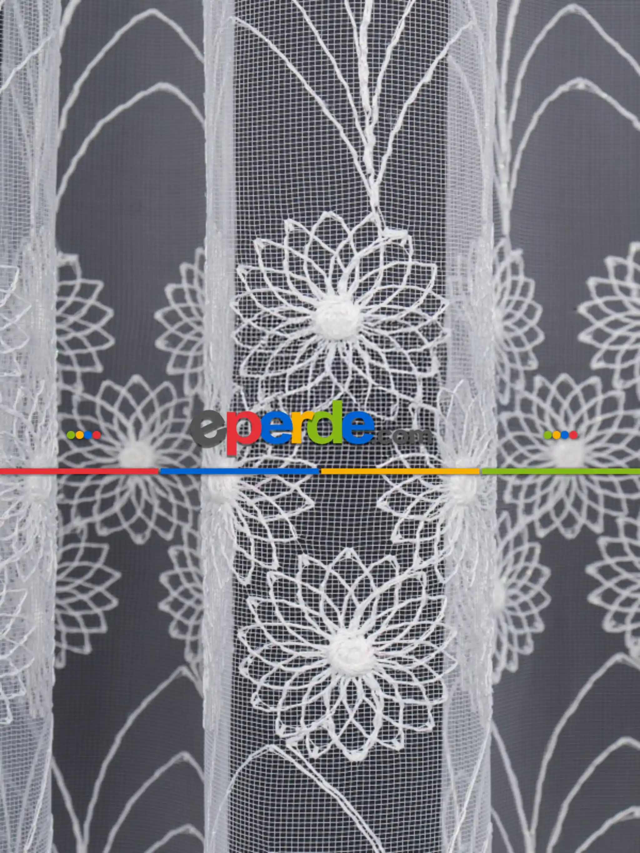 Şeritli Papatya Nakış İşlemeli Brode Tül Perde Ödeme Seçenekleri