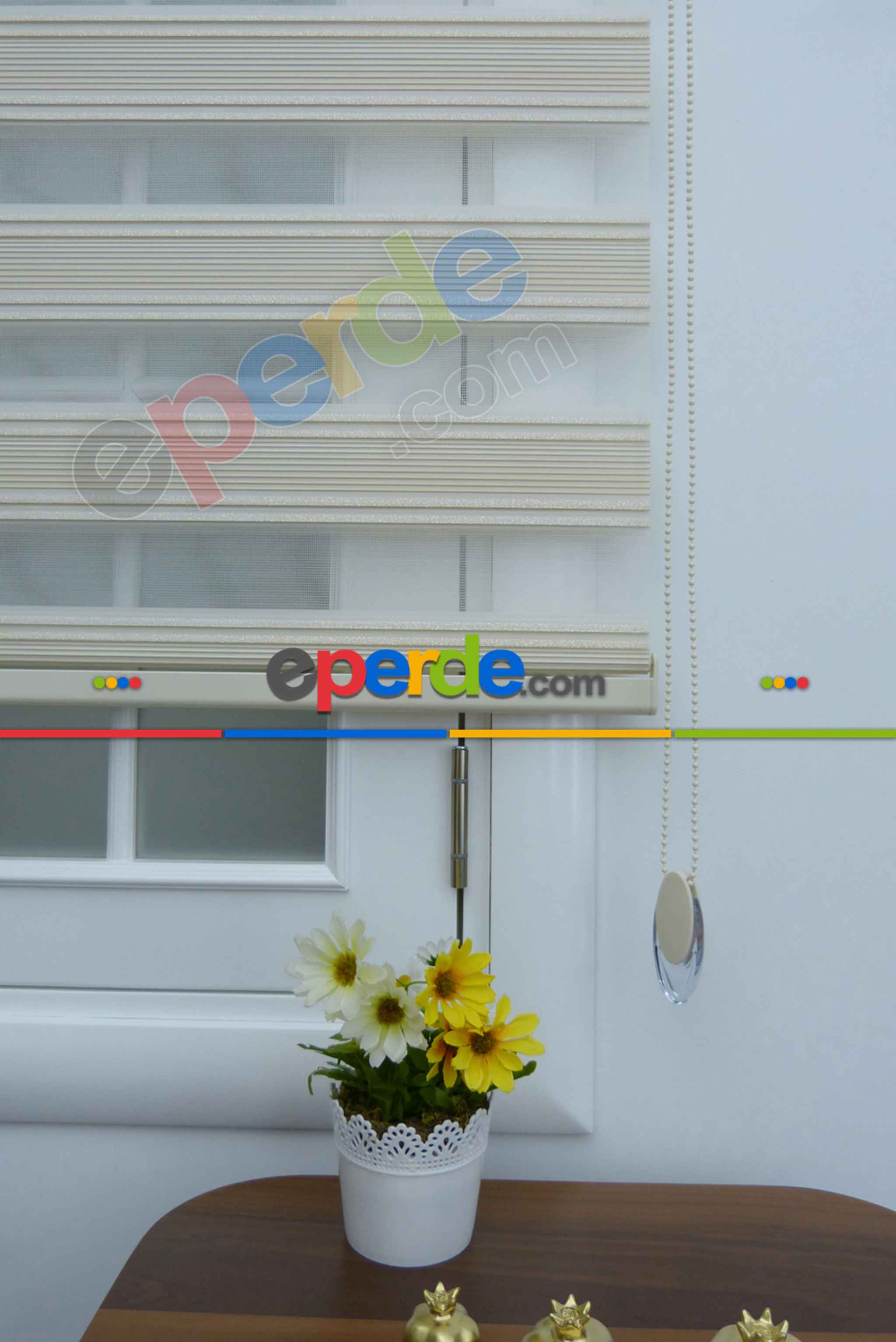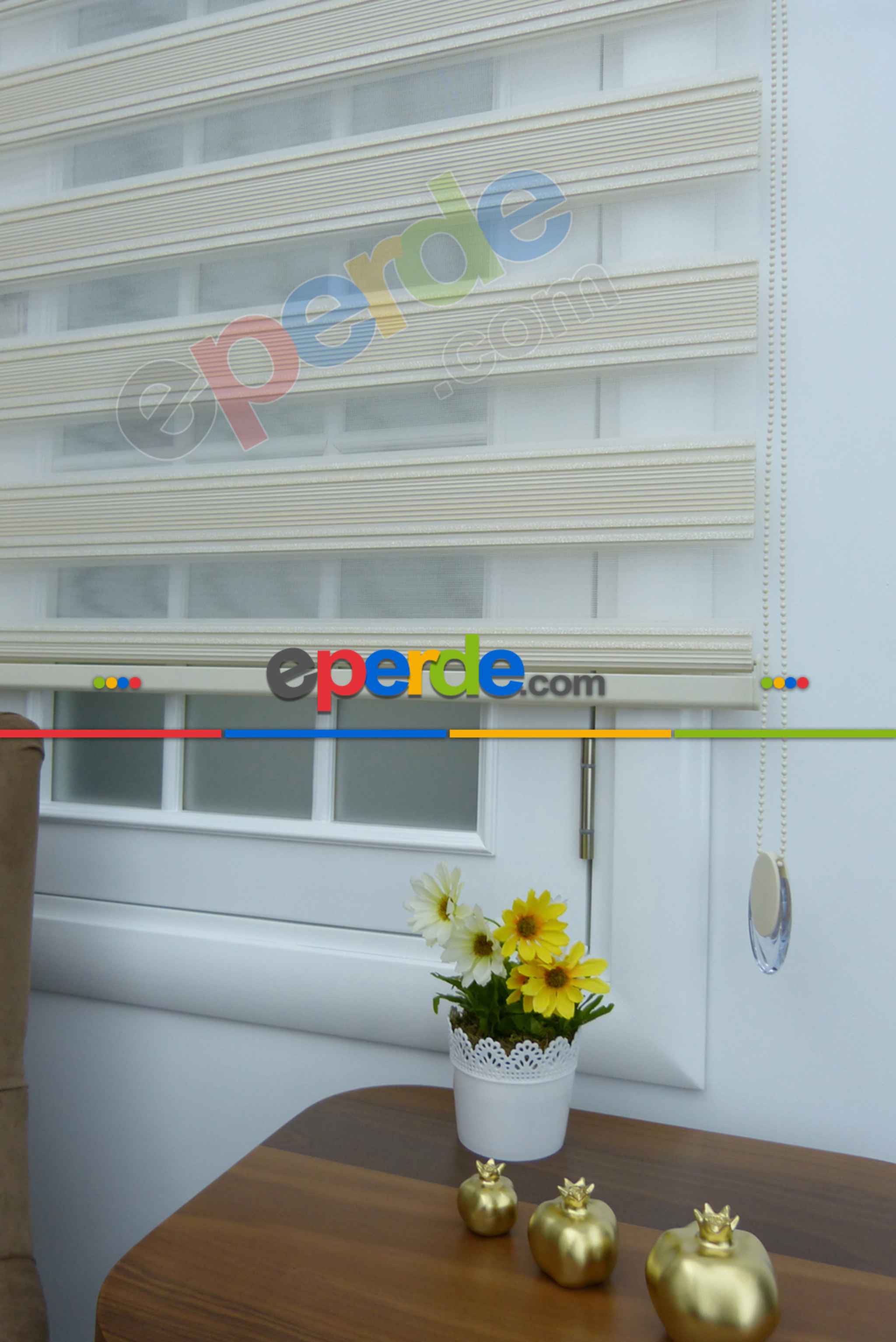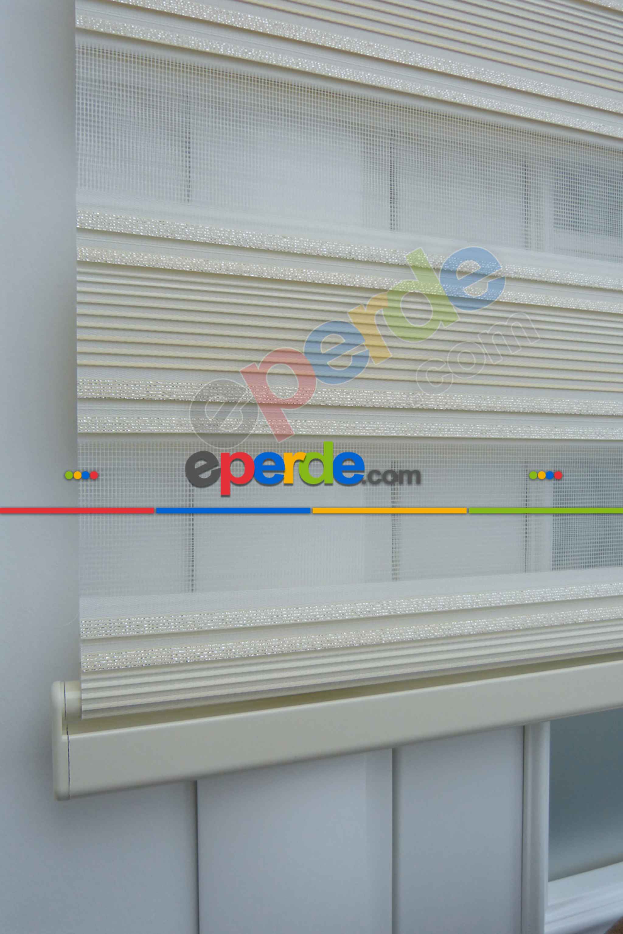 Pakistan | Simli Krem Yarım Plise Zebra Perde- Krem » Eperde