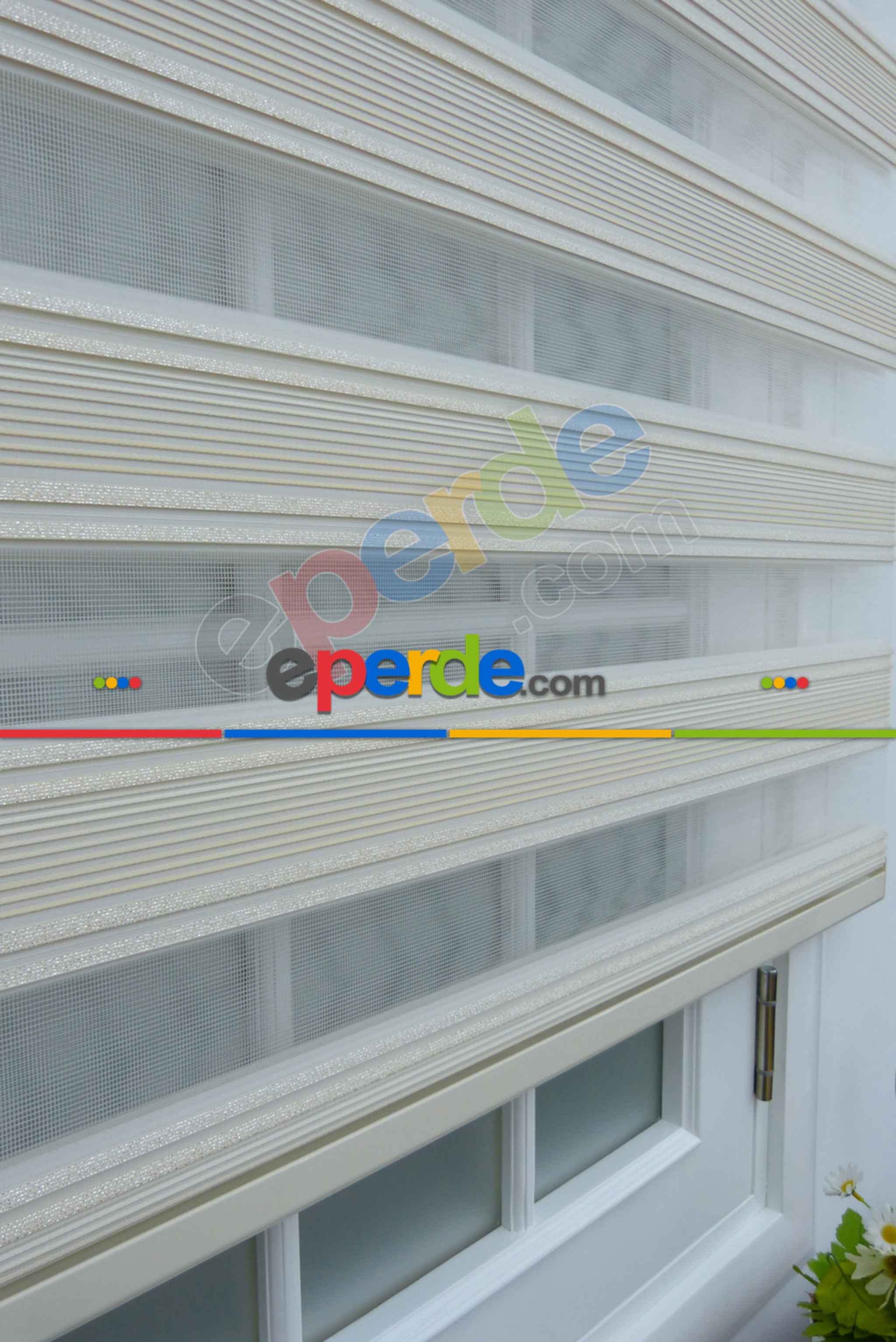 Simli Krem Yarım Plise Zebra Perde- Krem Ürün Açıklaması