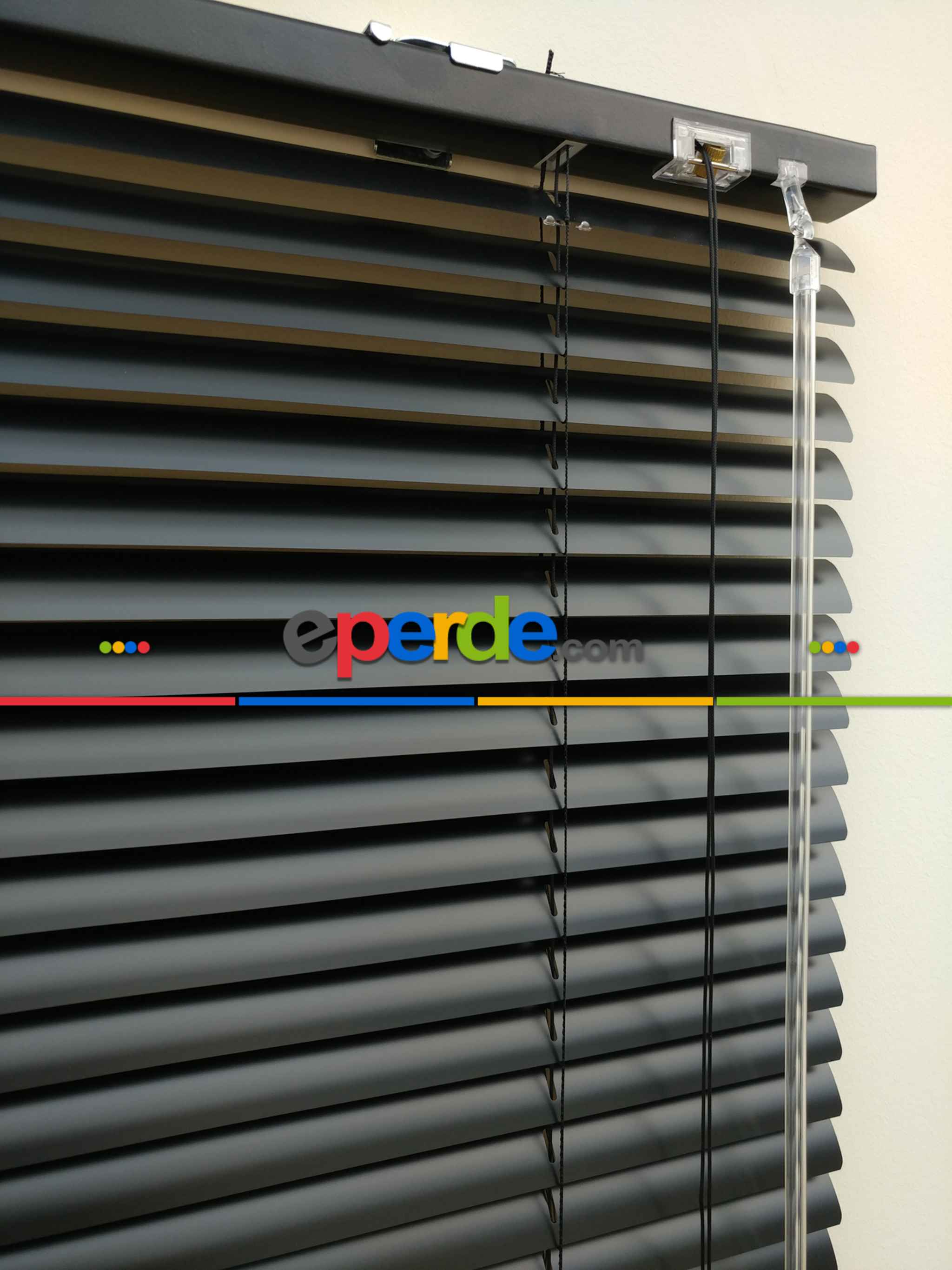 25mm slayt genişliğinde siyah jaluzi perde (Alüminyum)