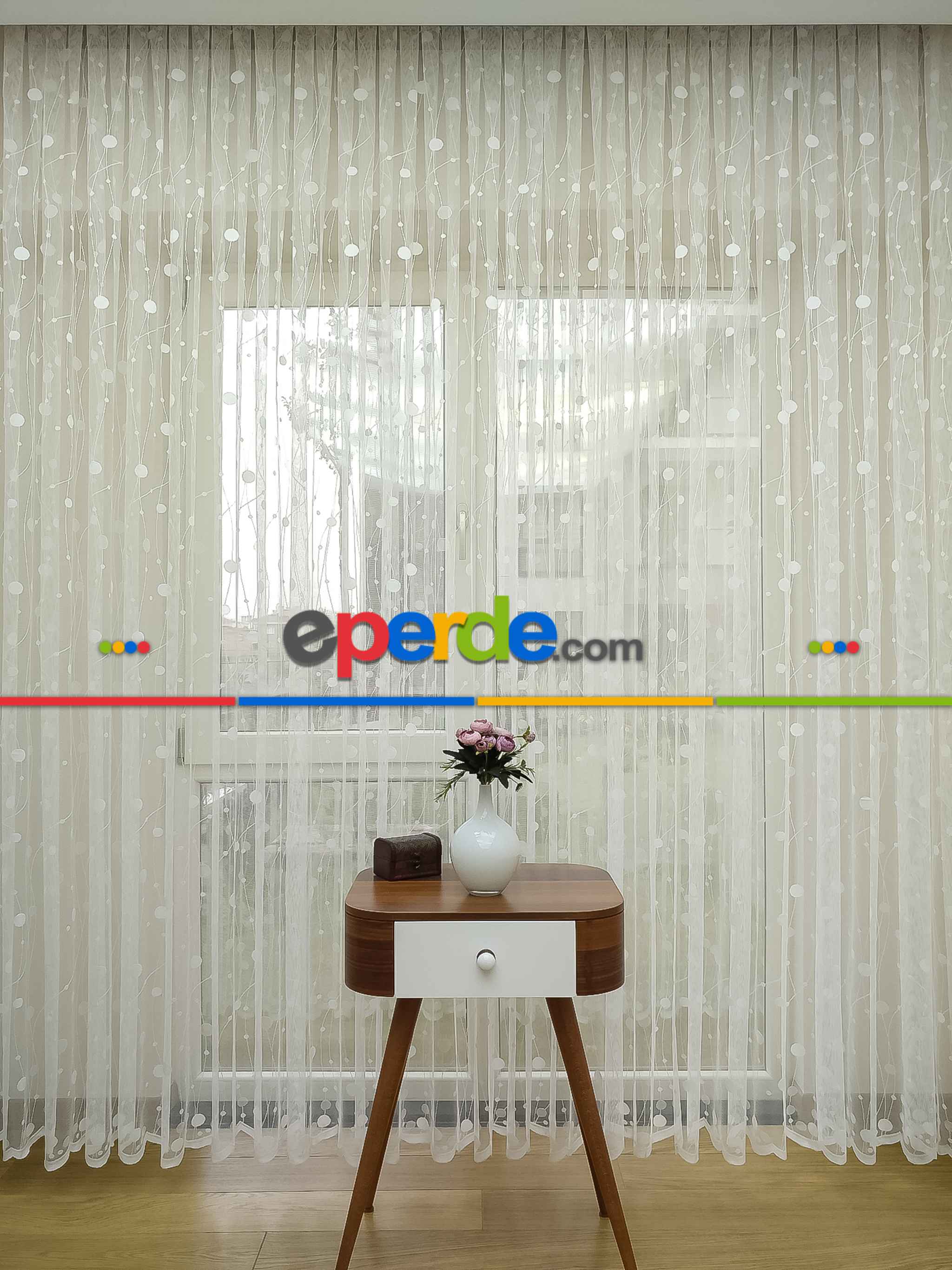 Spor Puantiyeli Desen Fransız Dantel Tül Perde- Ekru Ödeme Seçenekleri