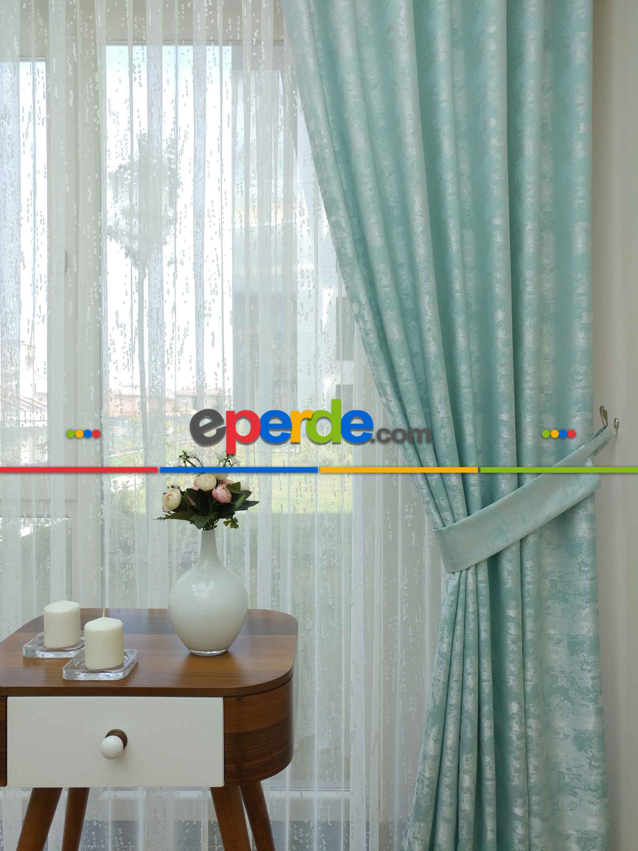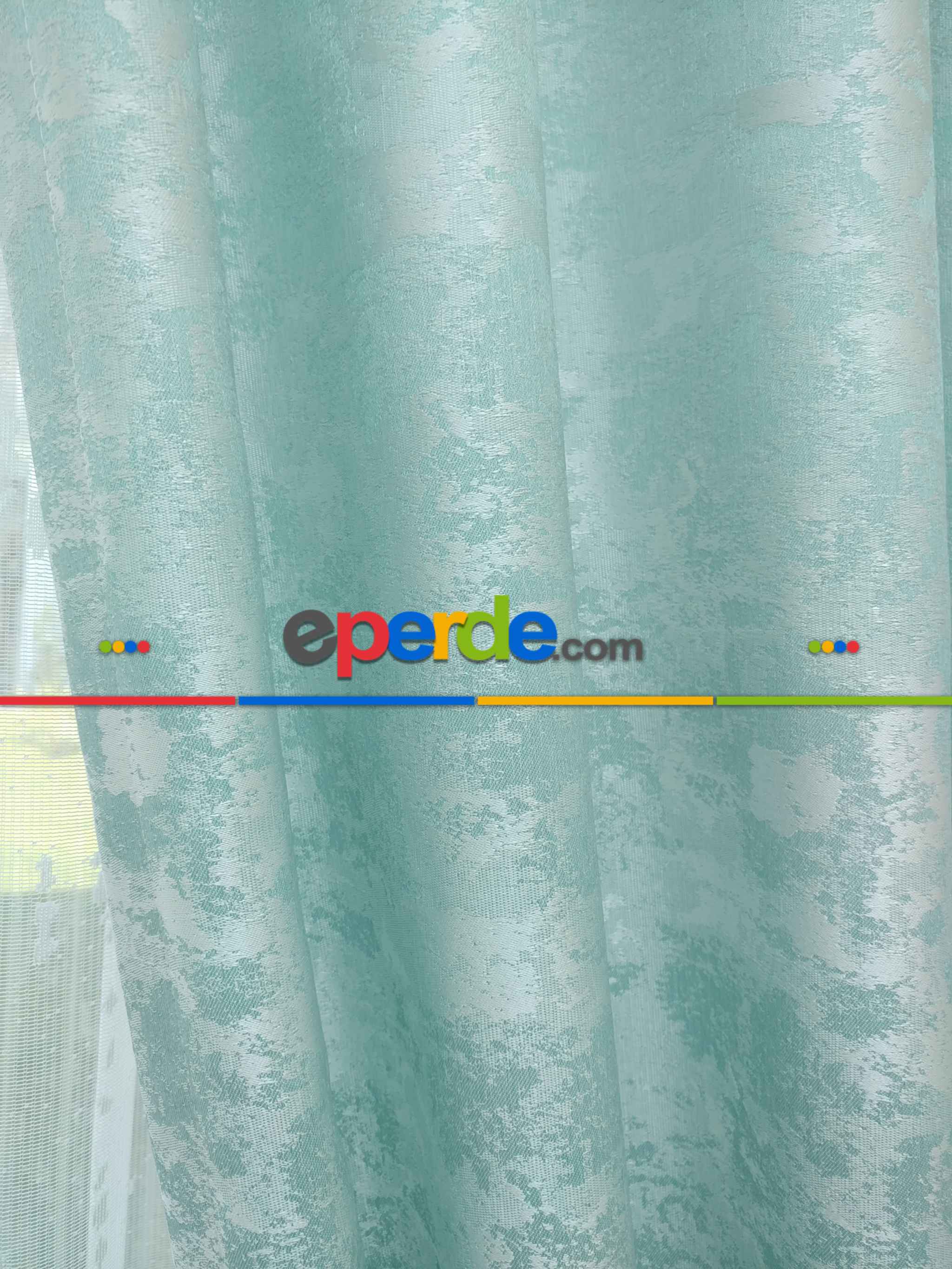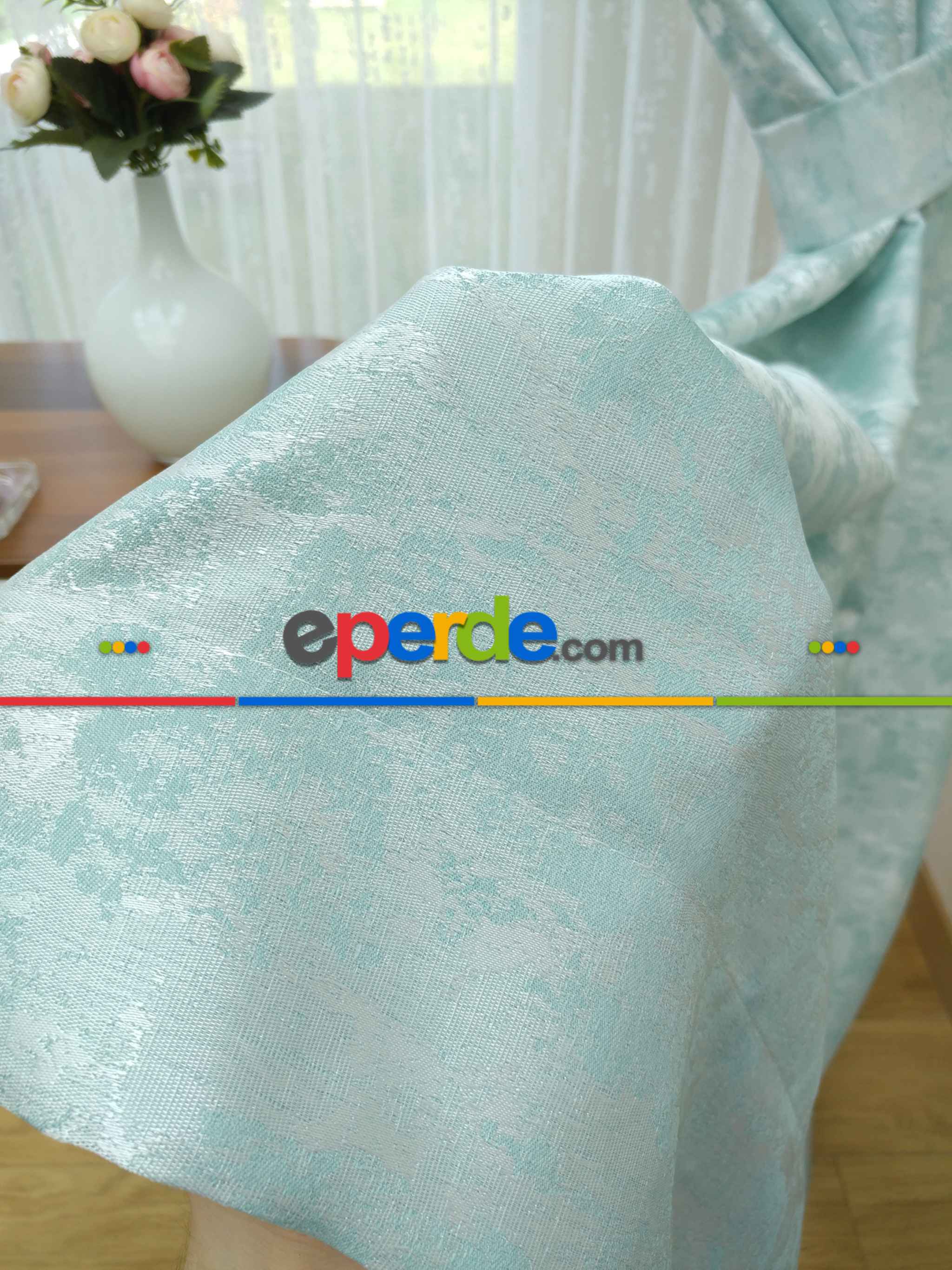 Patine Desenli Su Yeşil - Katyonik Jakar Fon Perde- Su Yeşili » Eperde