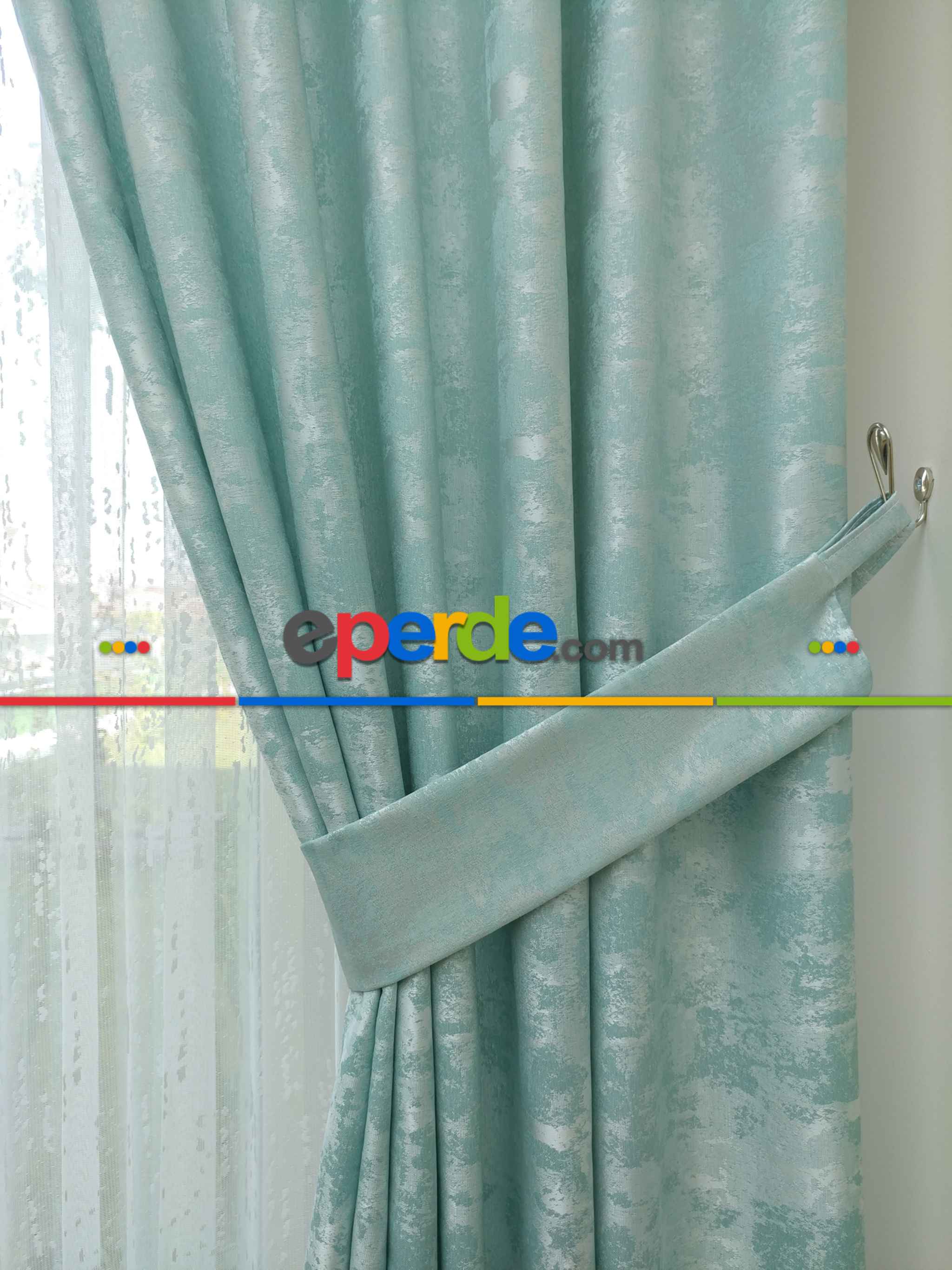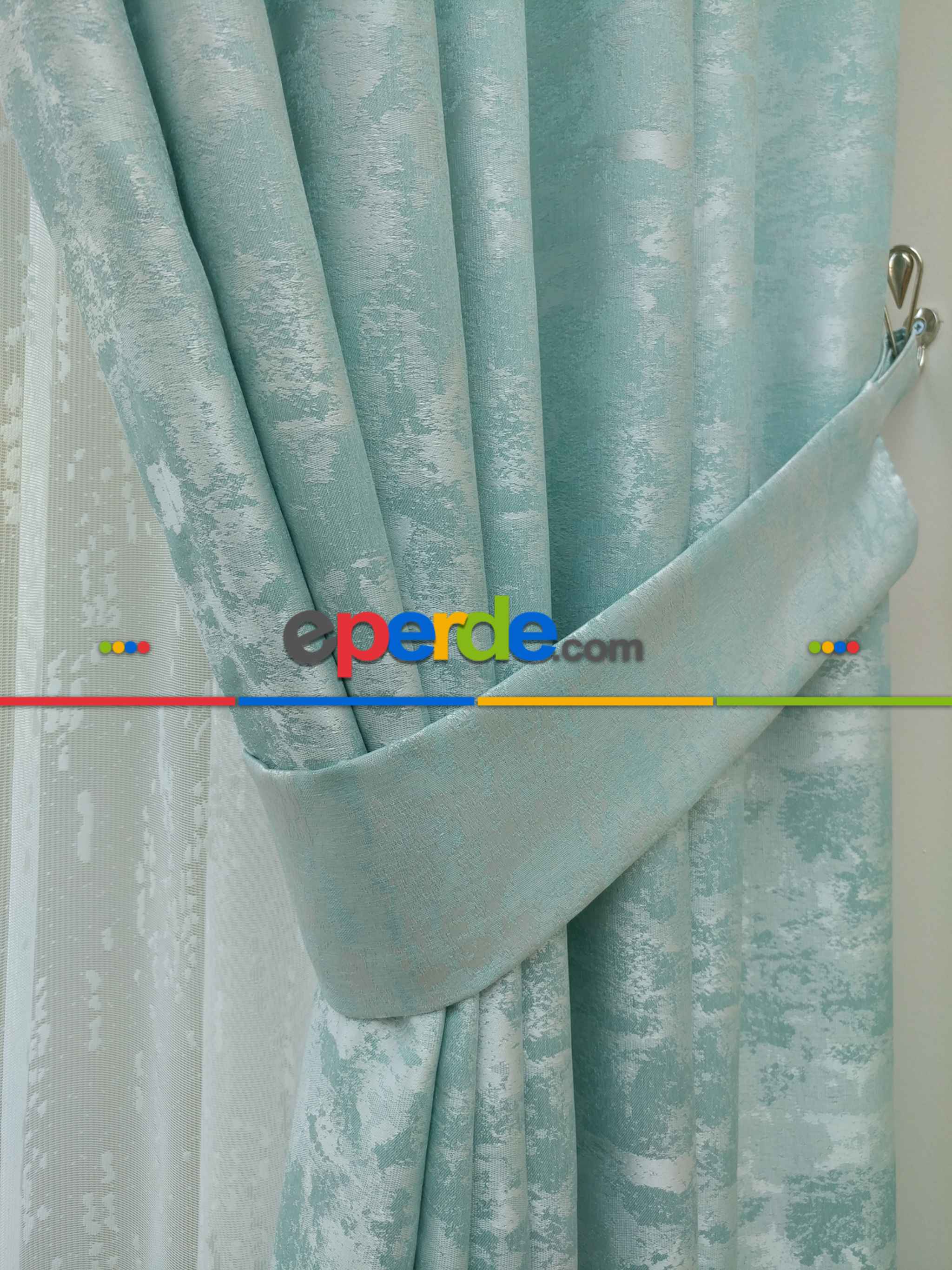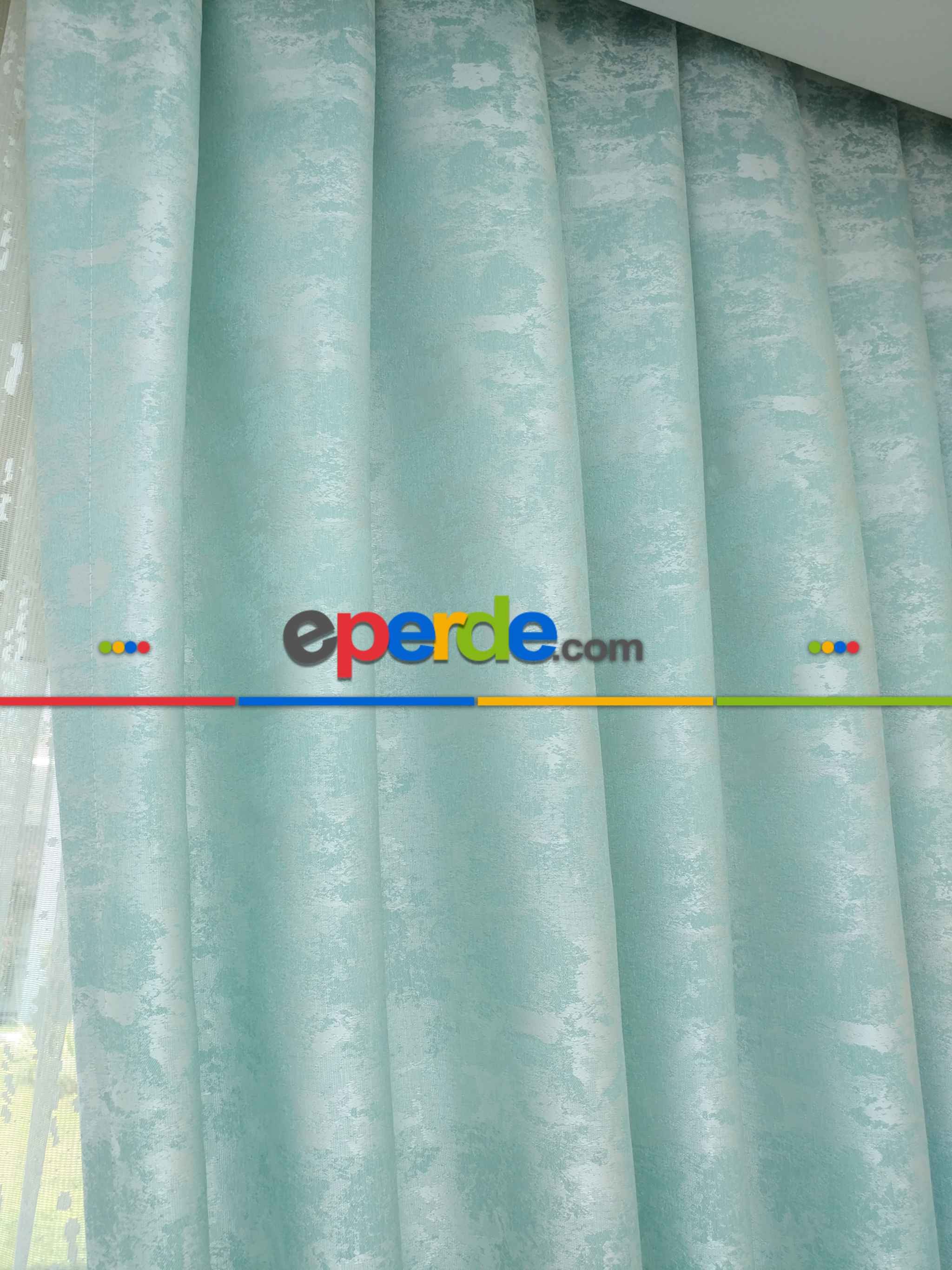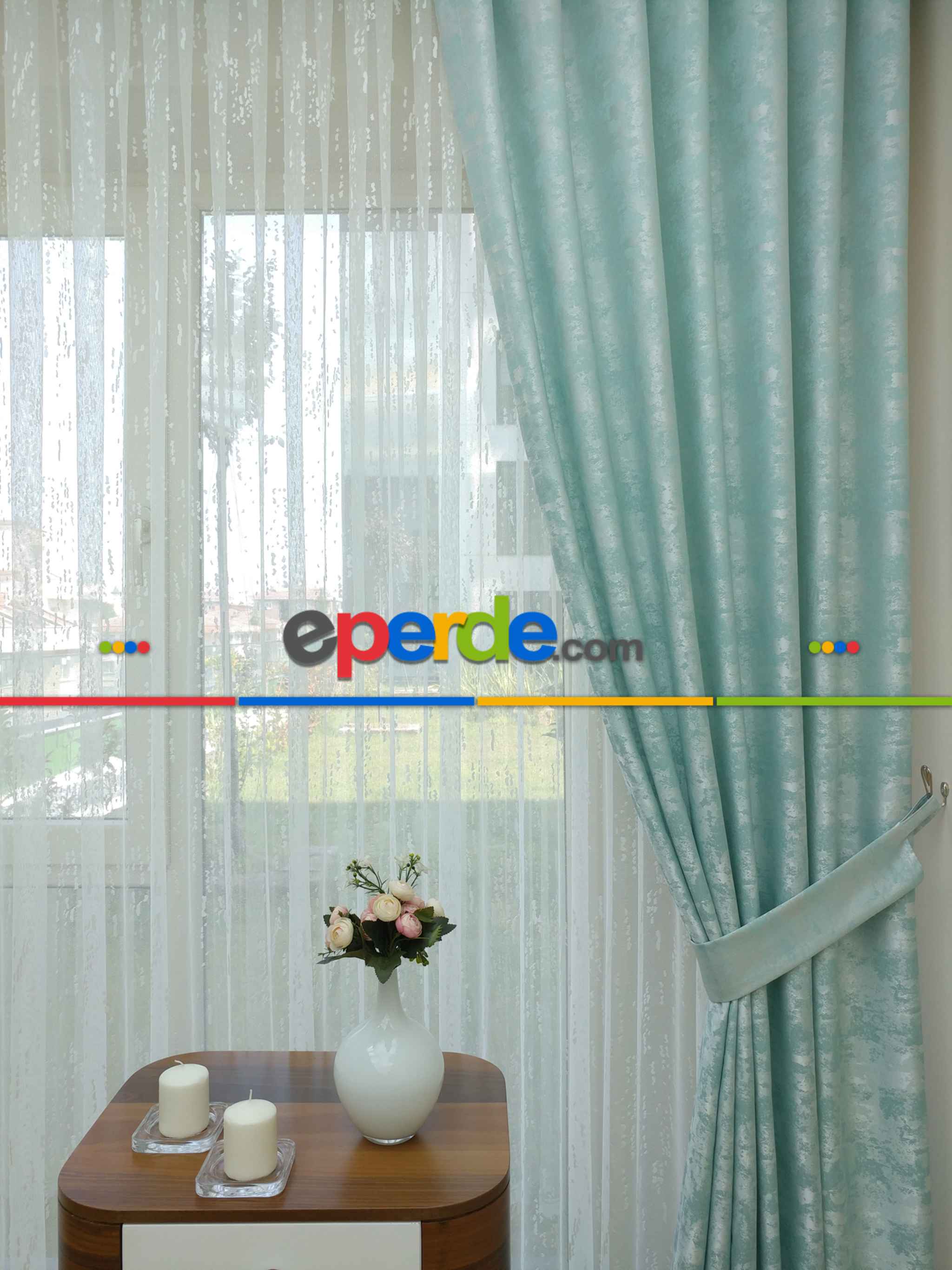 Patine Desenli Su Yeşil - Katyonik Jakar Fon Perde- Su Yeşili » Eperde