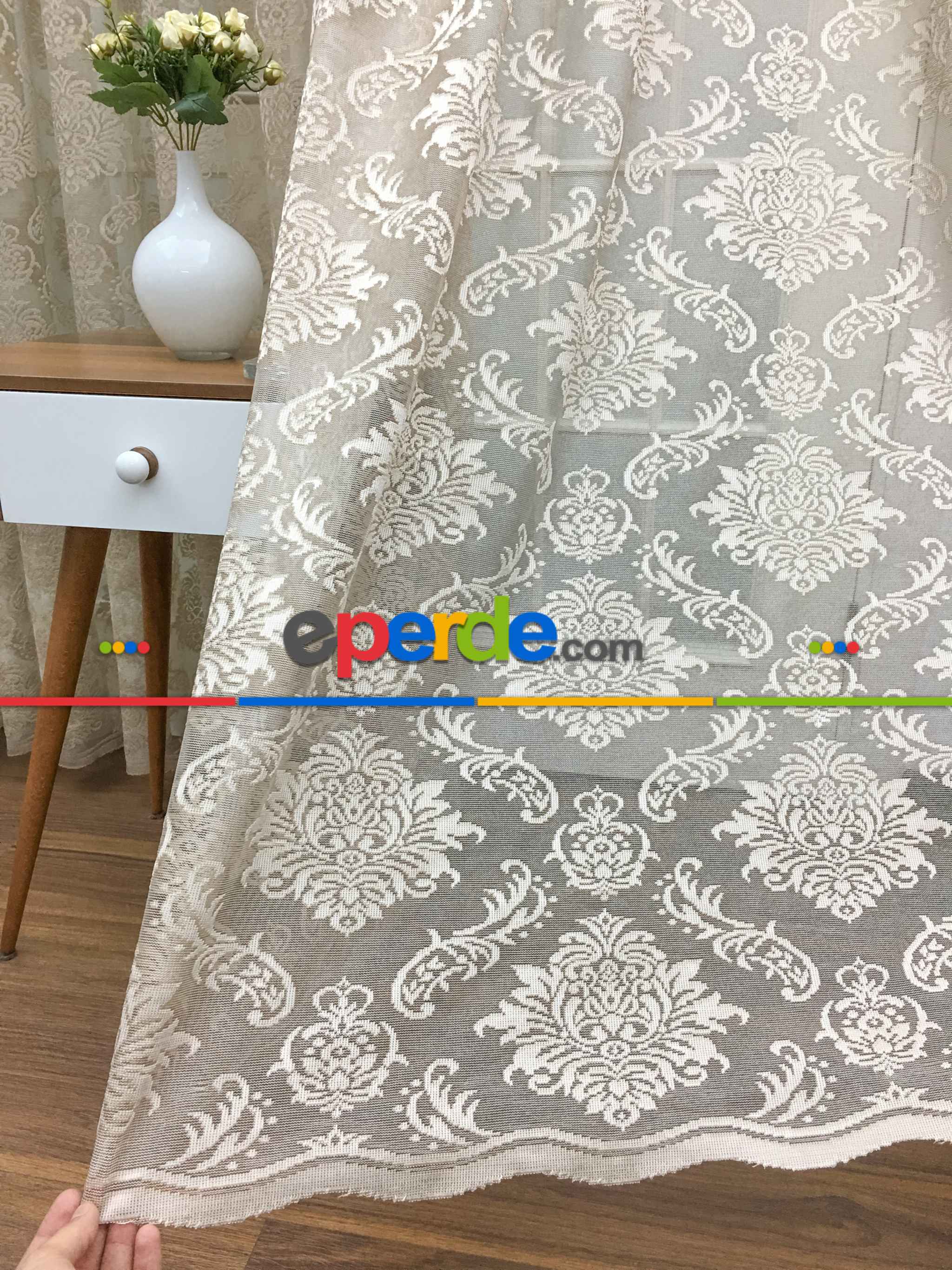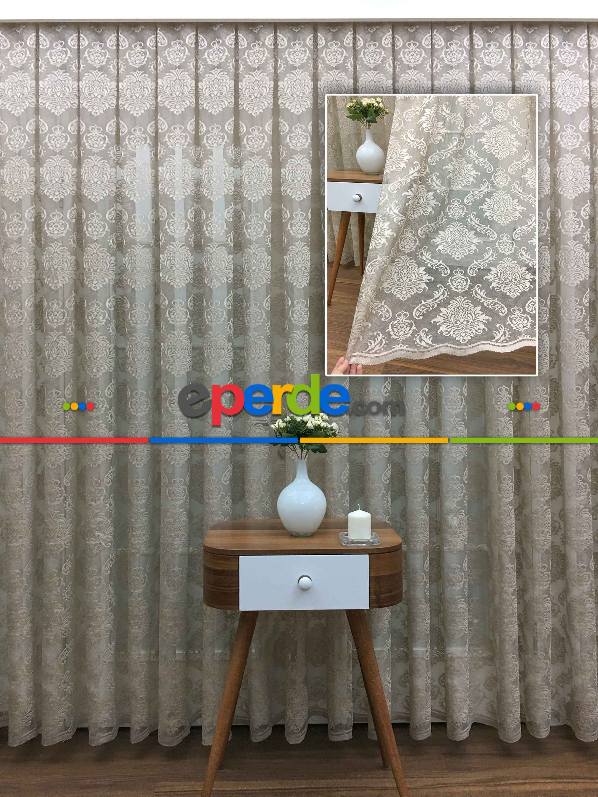 Macaristan | Sütlü Kahve Renk Fransız Danteli Tül Perde Damask Desenli- Sütlü Kahve » Eperde