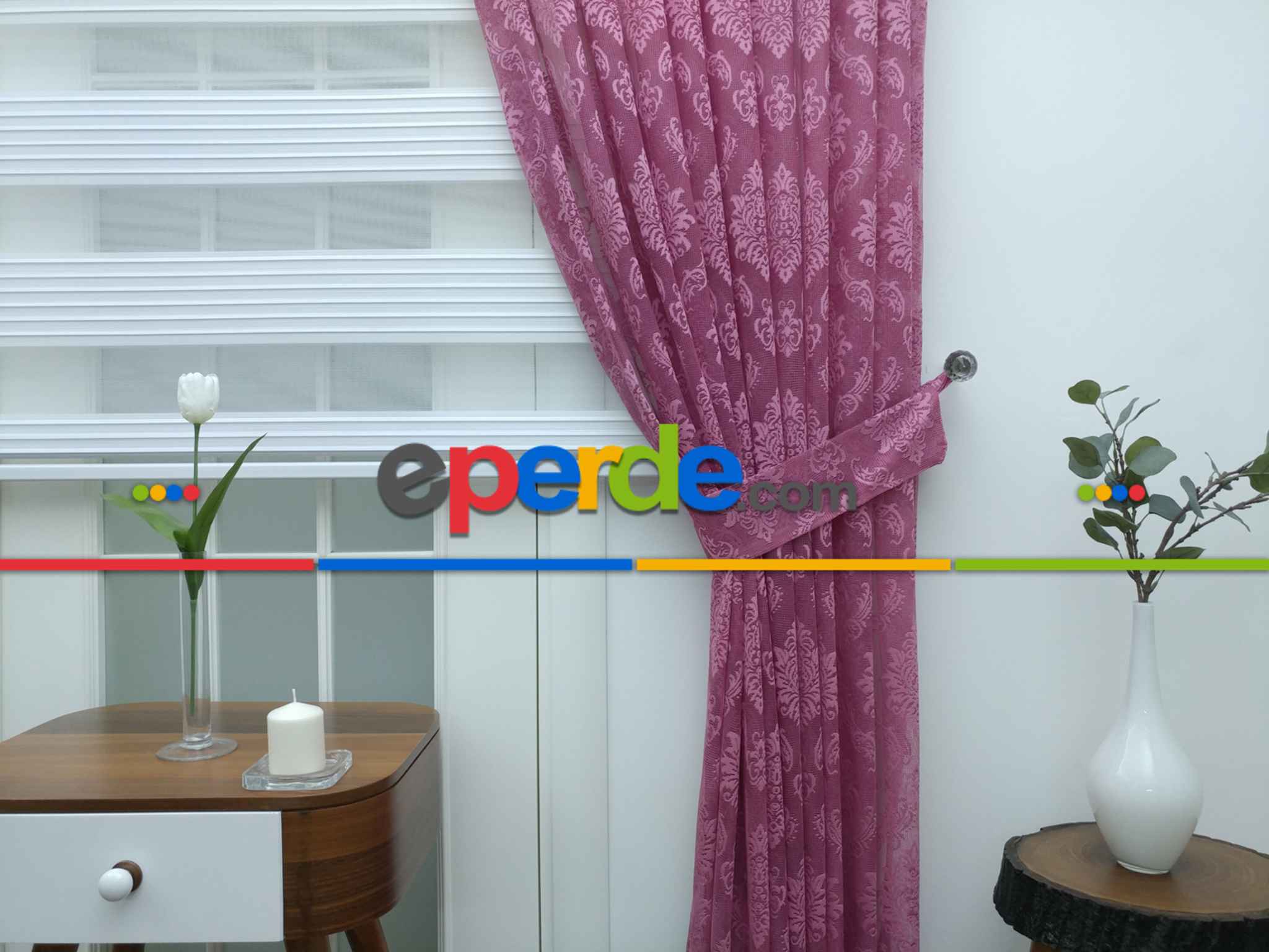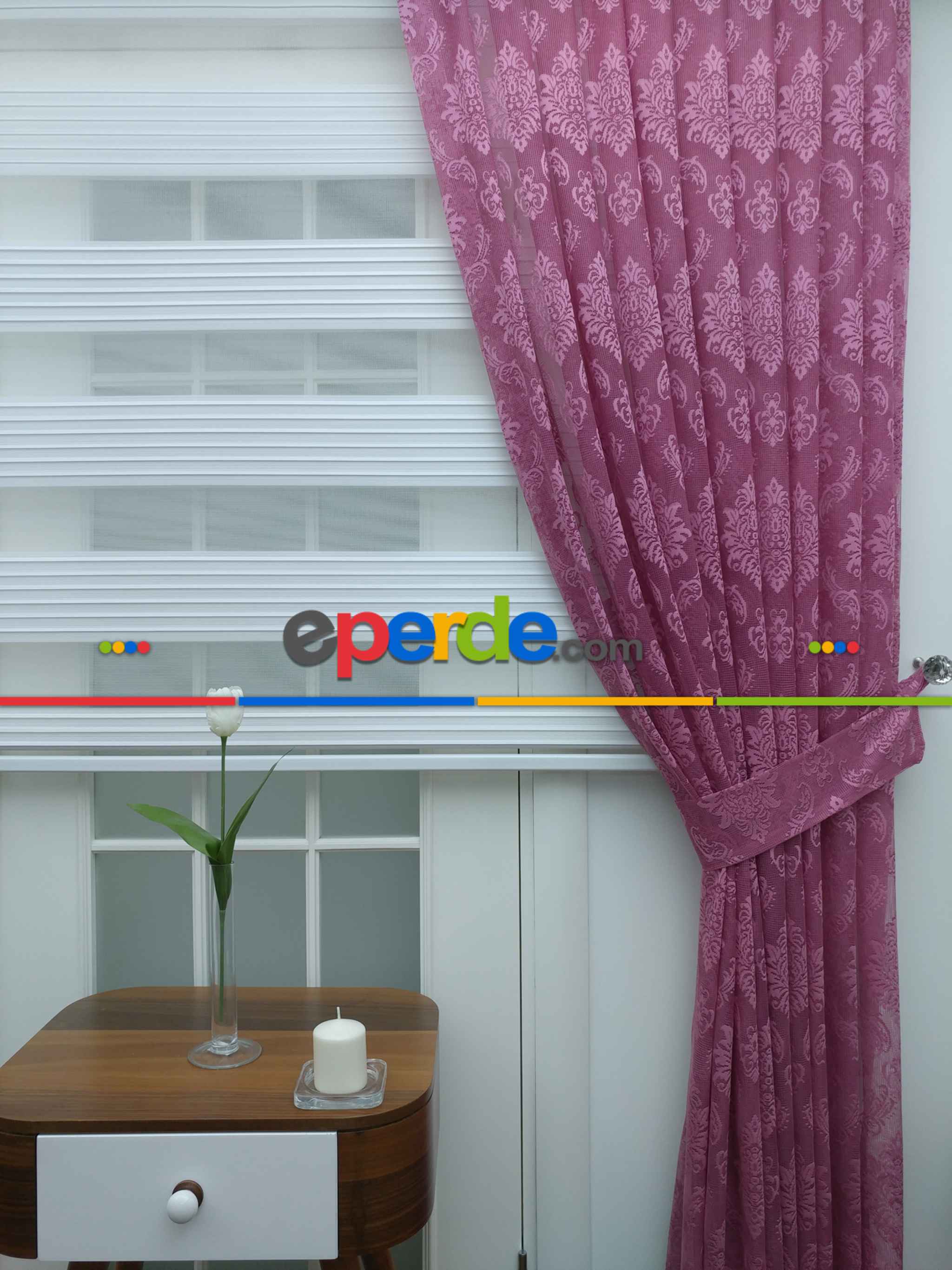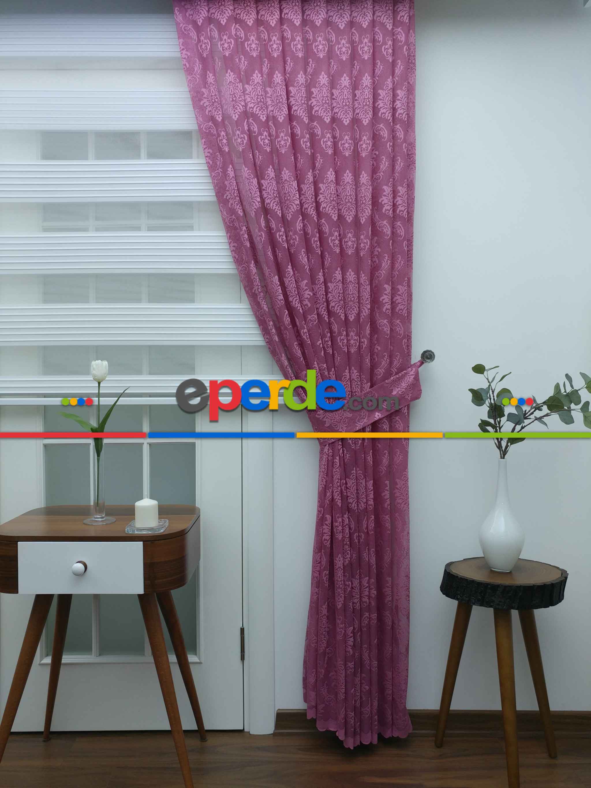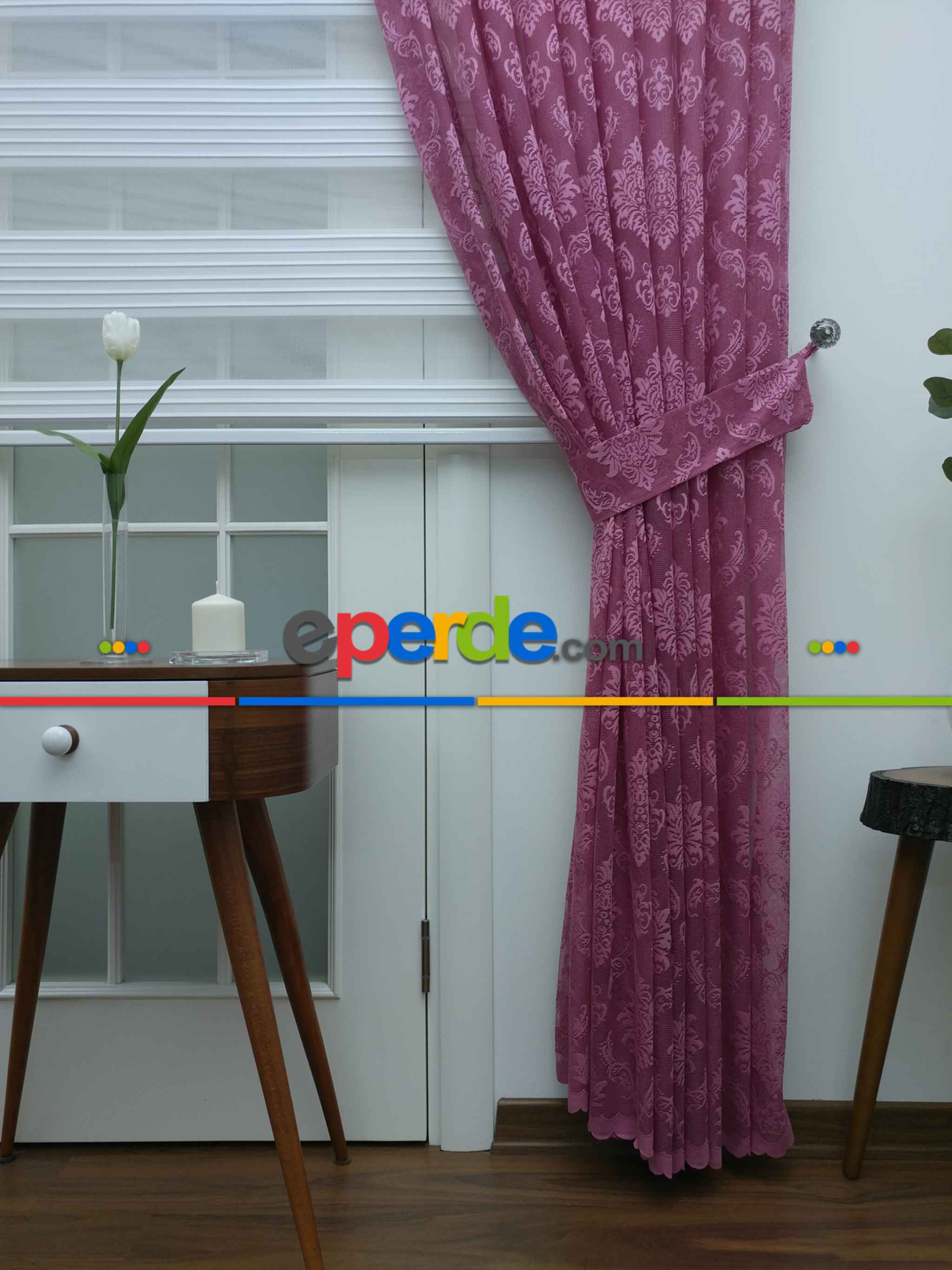 Danimarka | Tül Fon Perde- Gül Kurusu Damask Desenli- Gül Kurusu » Eperde