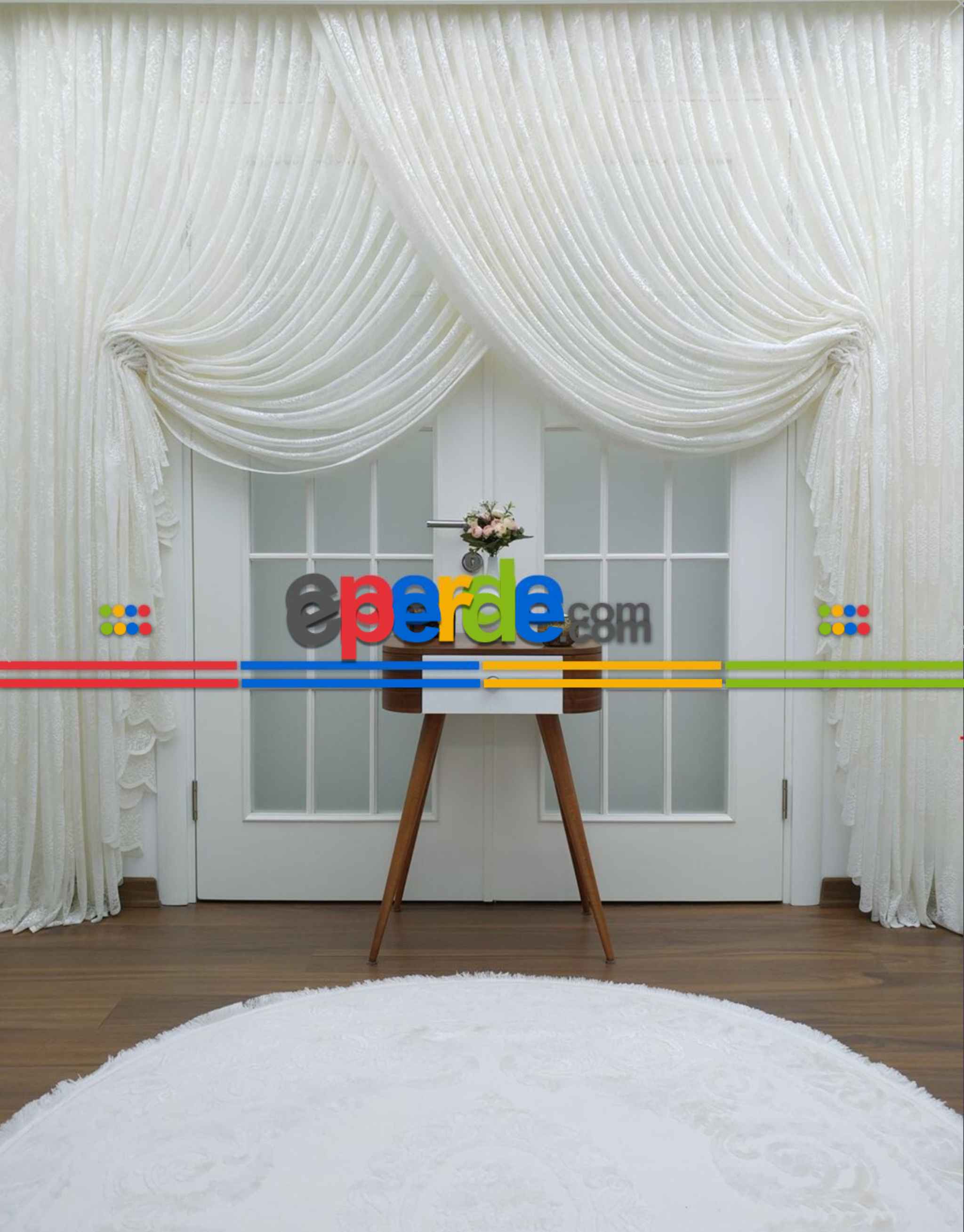 Tül Perde Ve Kruvaze Perde Damask Desenli- Ekru Ürün Açıklaması