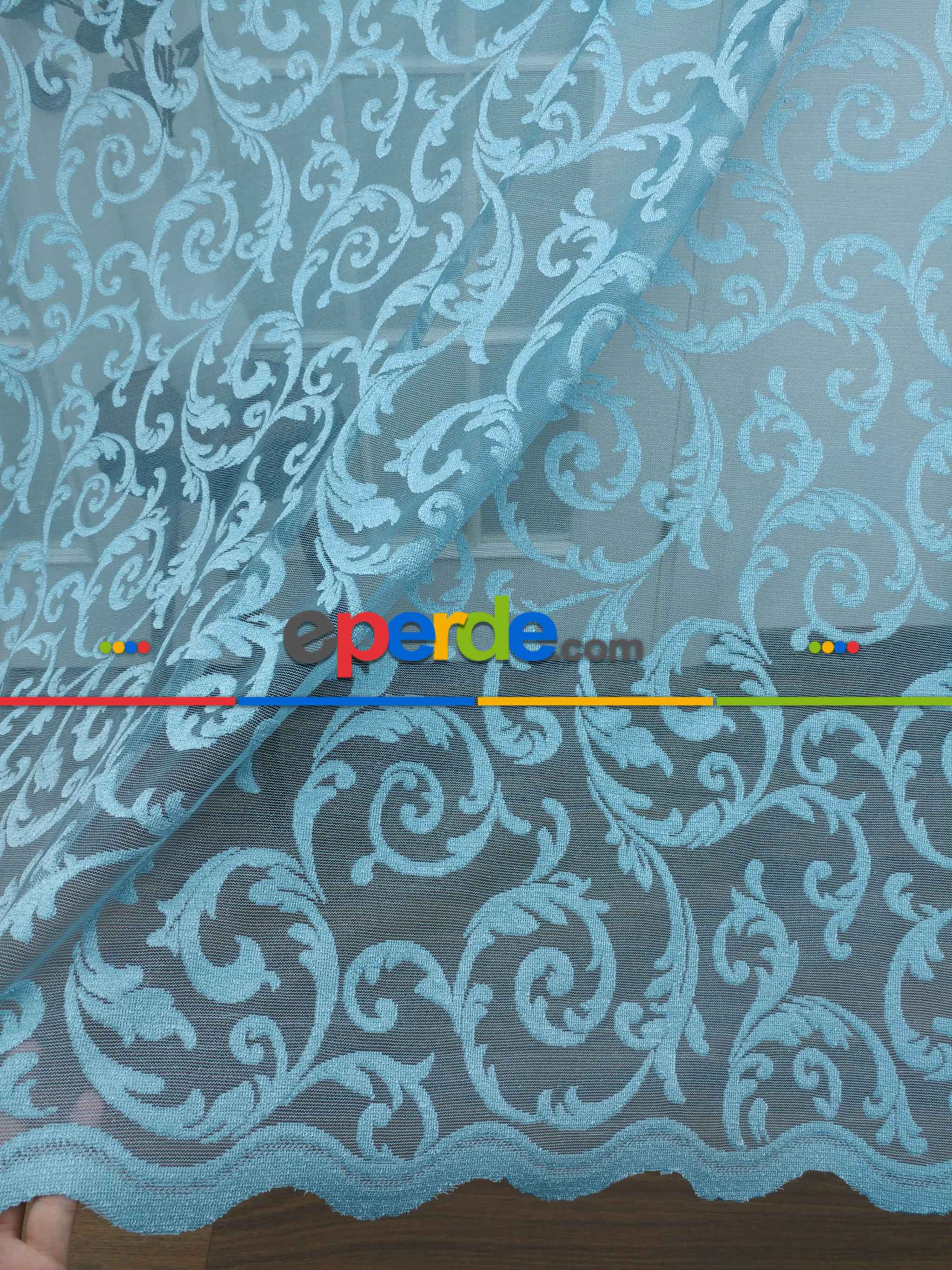 Tül Perde Ve Kruvaze Perde Şal Desenli ( Kdk Tül - Daha Kalın)- Mavi