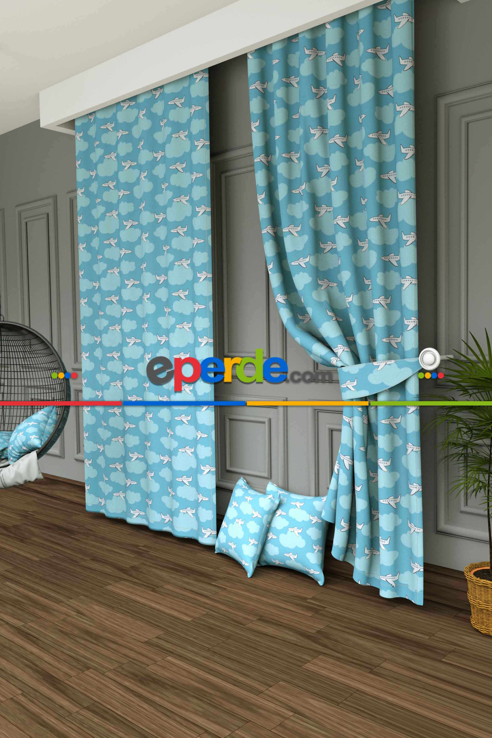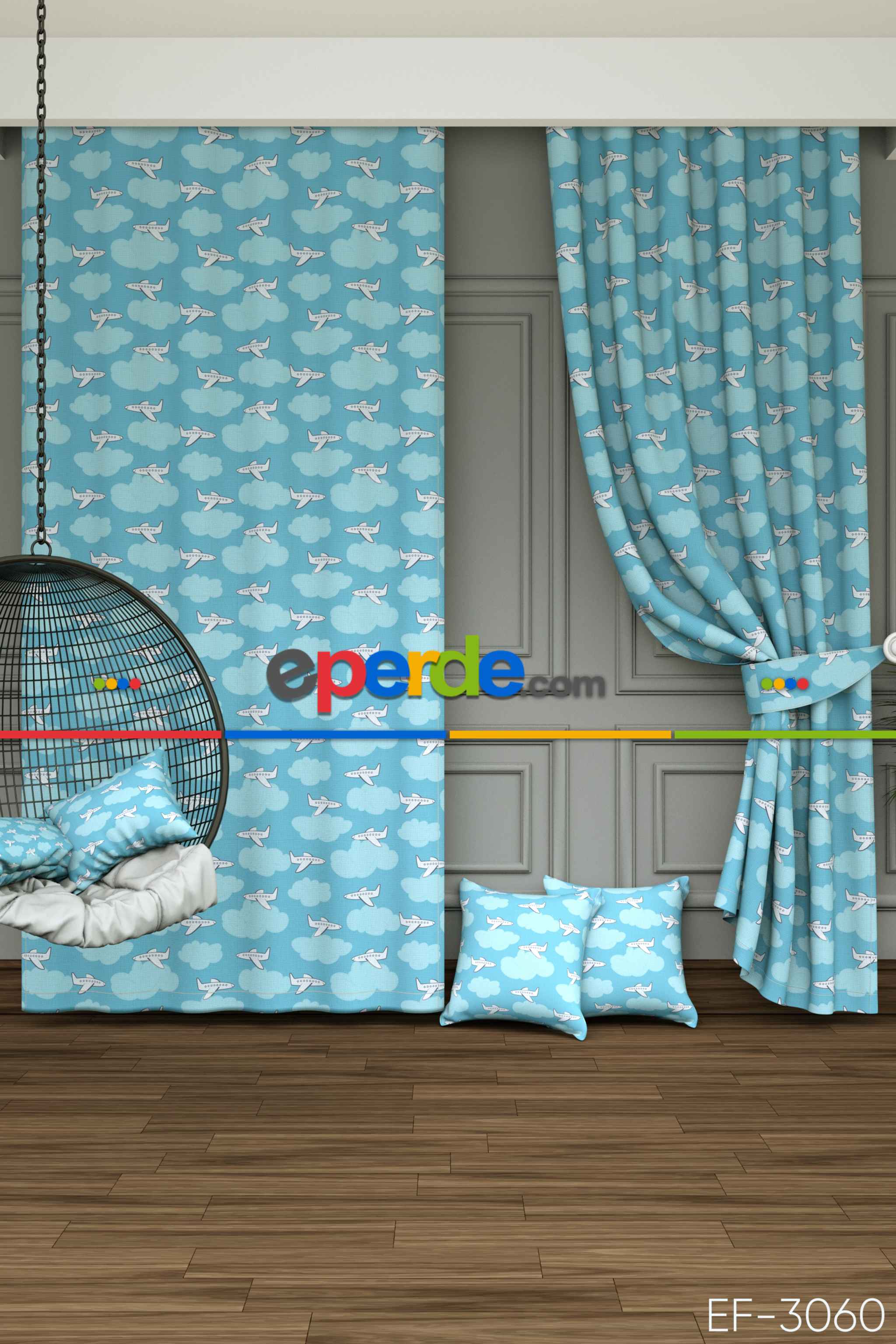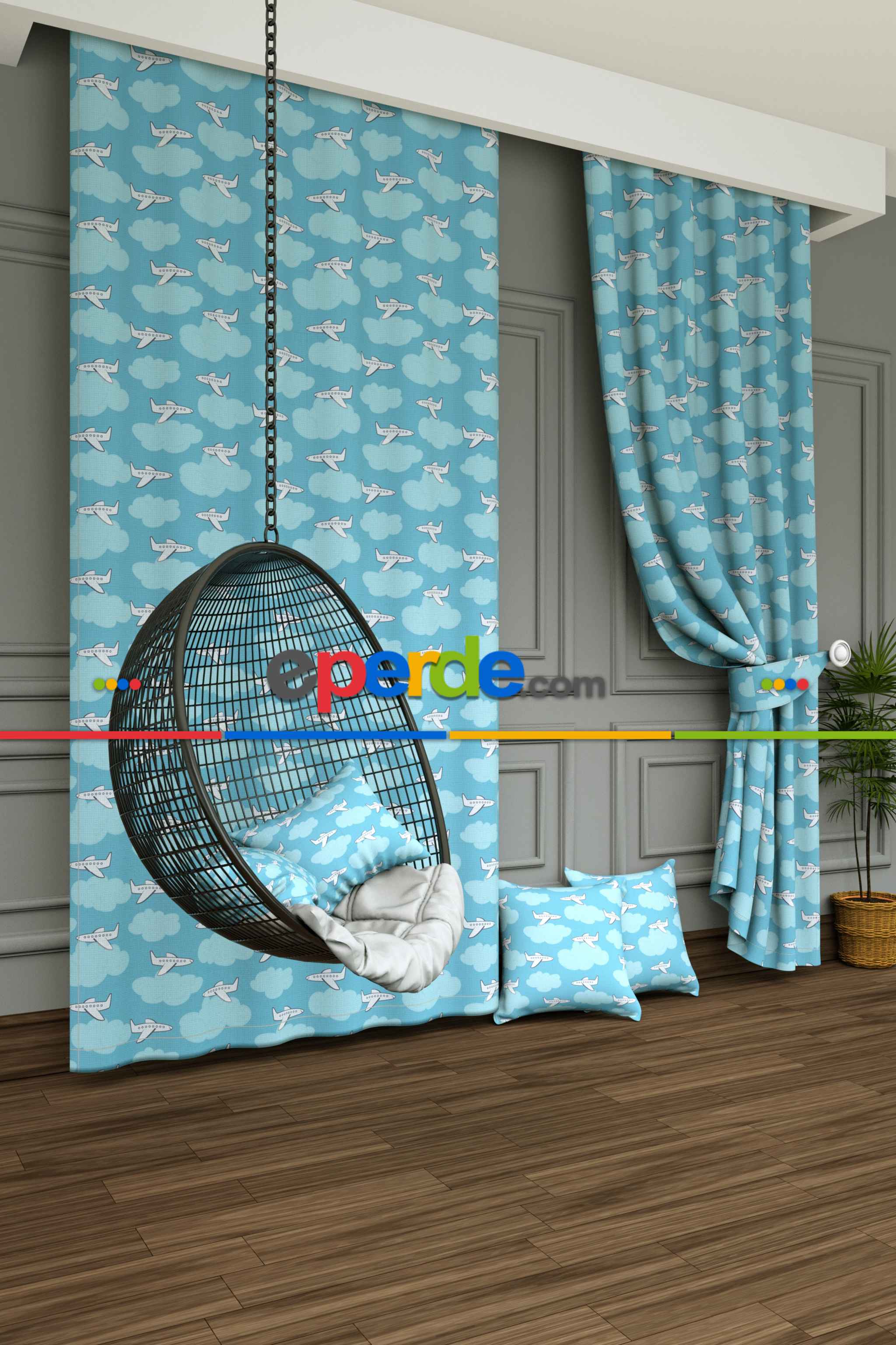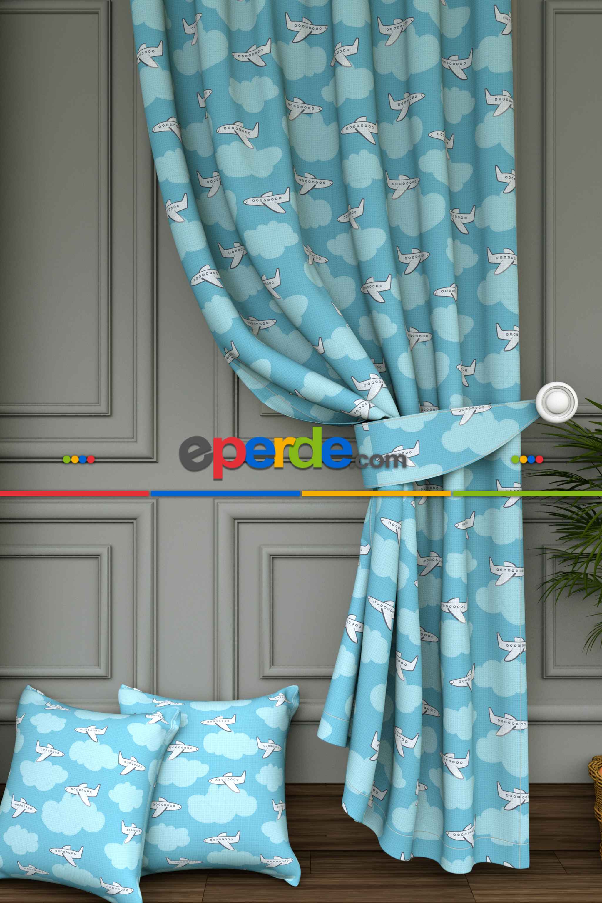 Dökümlü Kumaştan Uçak Baskılı Fon Perde
