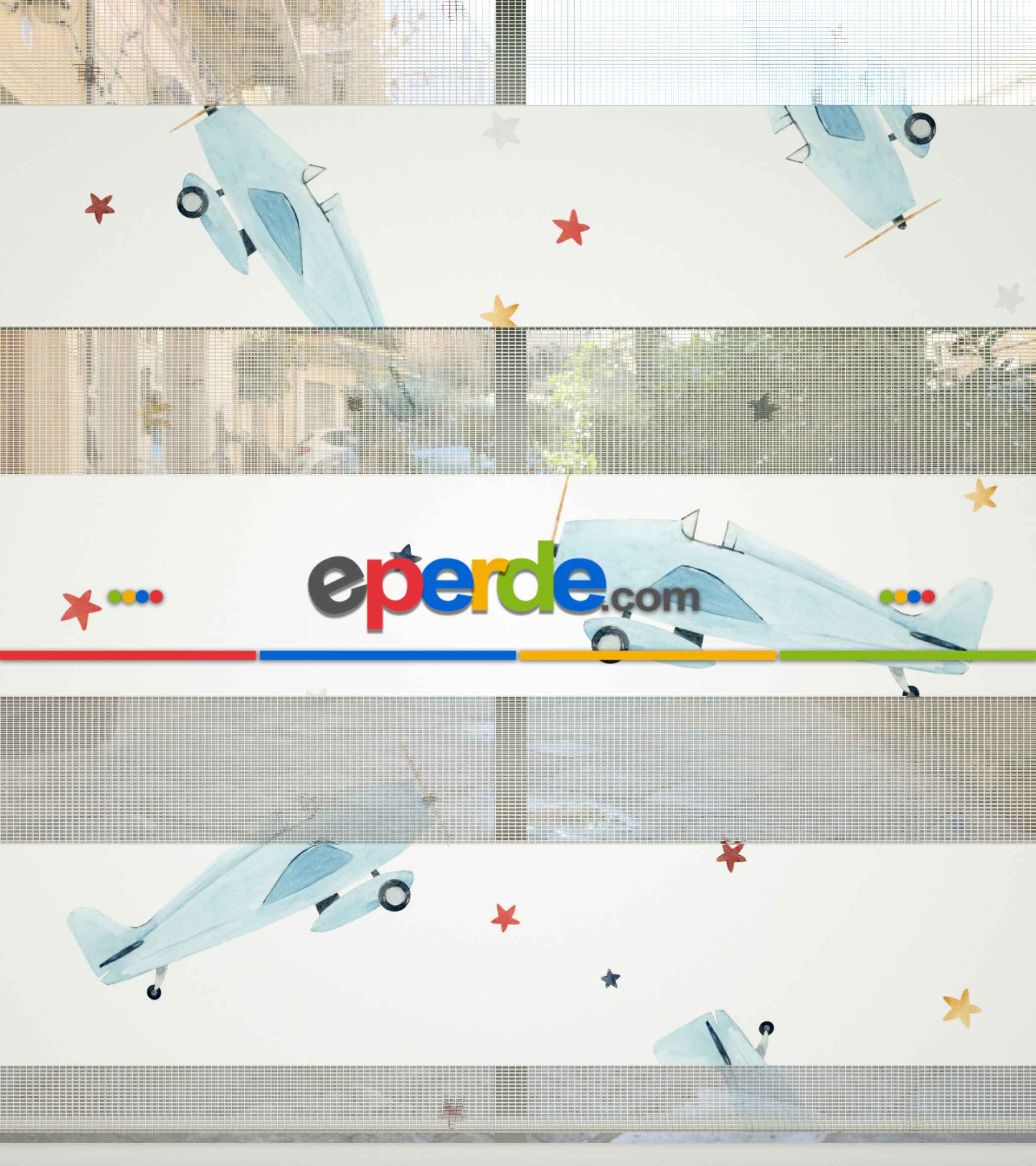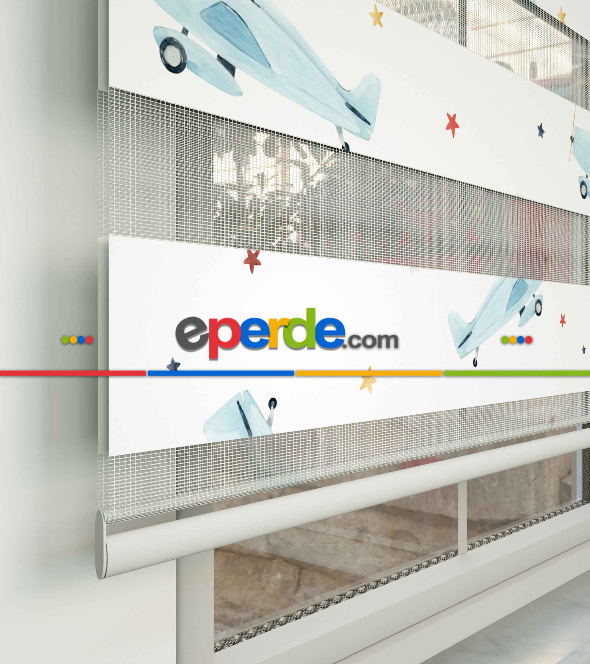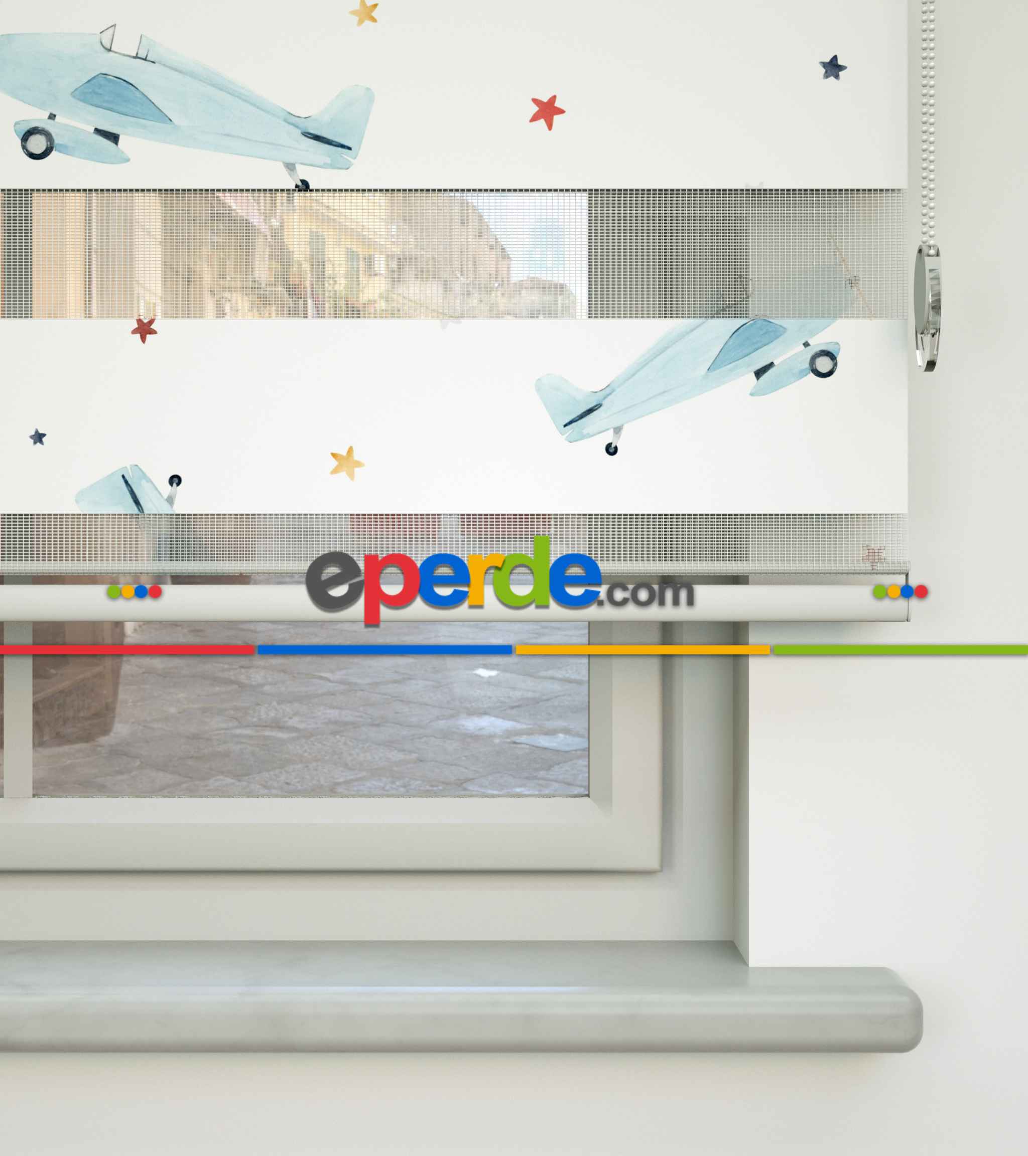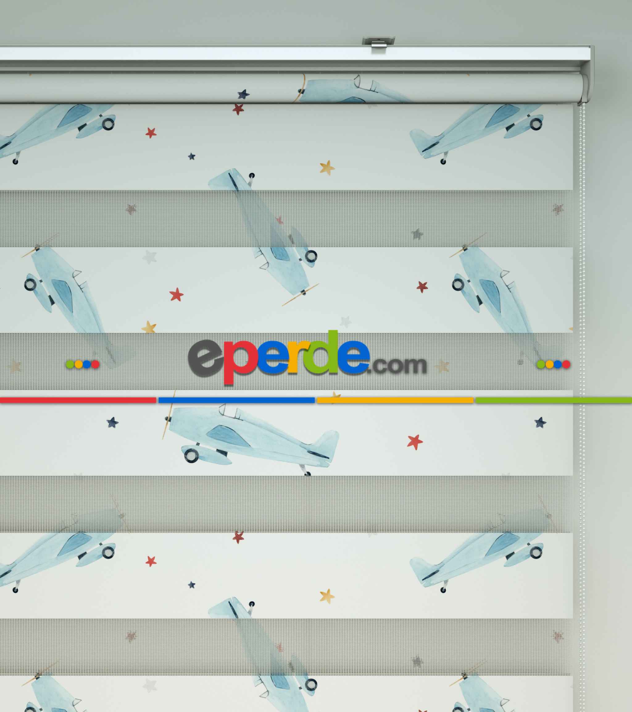 Uçak Desenli Baskılı Zebra Perde- Çok Renkli » Eperde