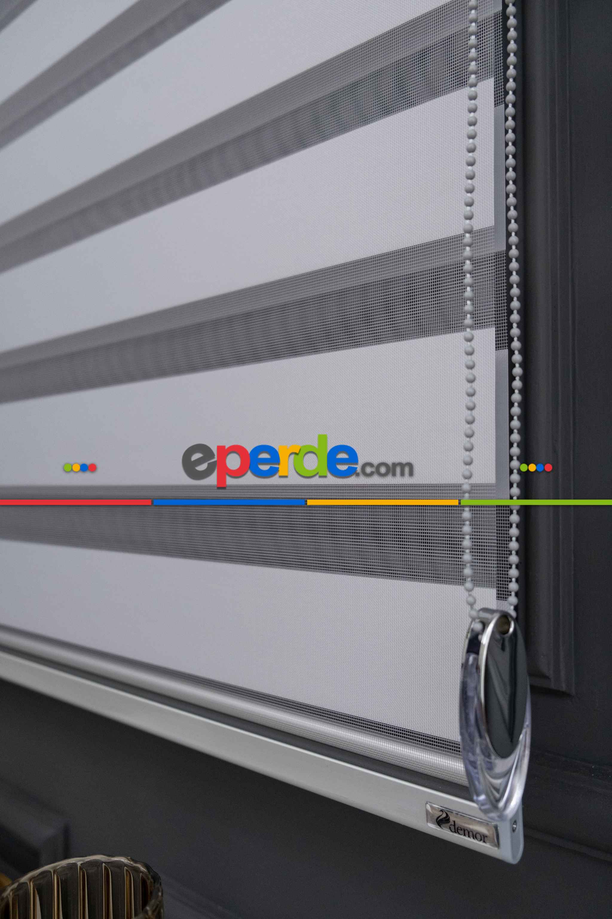 Demor Home Ay Işığı Serisi Gri Rengi Yüksek Kalite Zebra, Mekanize Perde