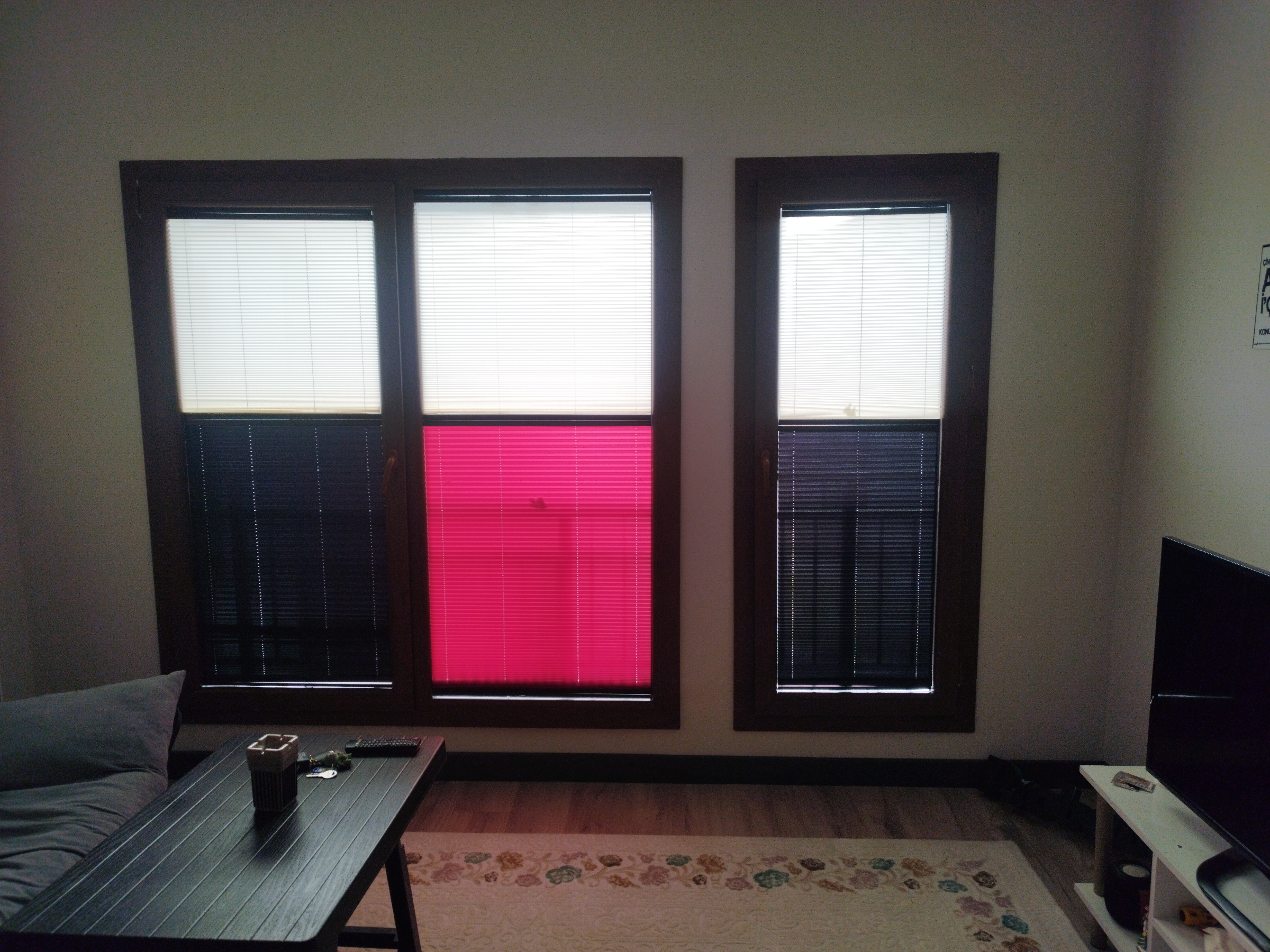 Perde, pimapenin iç kısmına direkt olarak cama yapıştırılır. Perdenin cama yapıştırılacak iki profili vardır. Bu profiller, camın üst ve alt kısmına, üzerlerindeki bantlarla yapıştırılır. Ardından perde bu profillere oturtulur. Bu işlem yaklaşık 1 dakika sürer ve perde kullanıma hazır hale gelir. Camın yüzeyinin temiz olmasına özen gösteriniz.