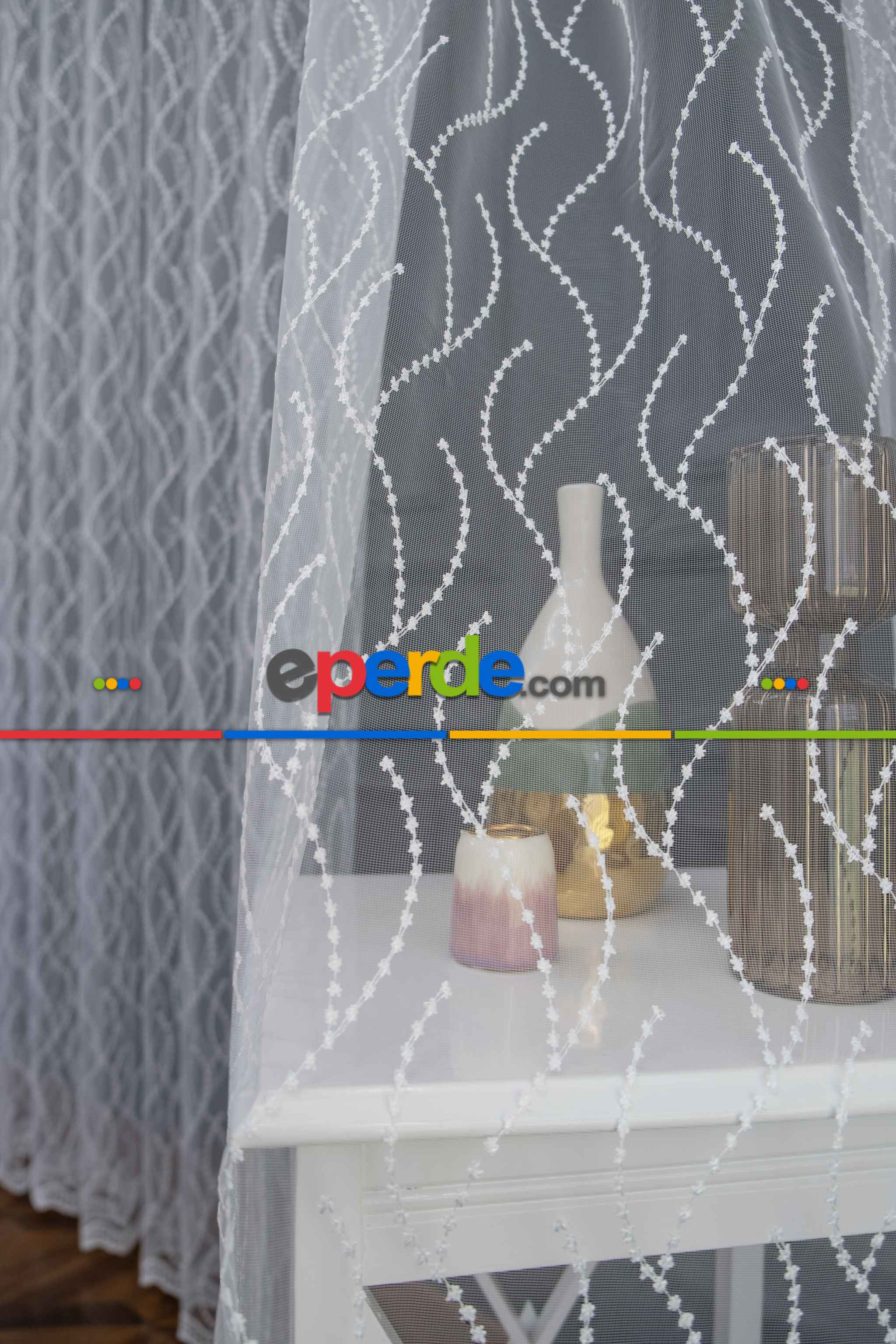 Yatak Odası - Brode Sarmaşık Desen Tasarım Tül Perde Yeni Model Tül Ödeme Seçenekleri