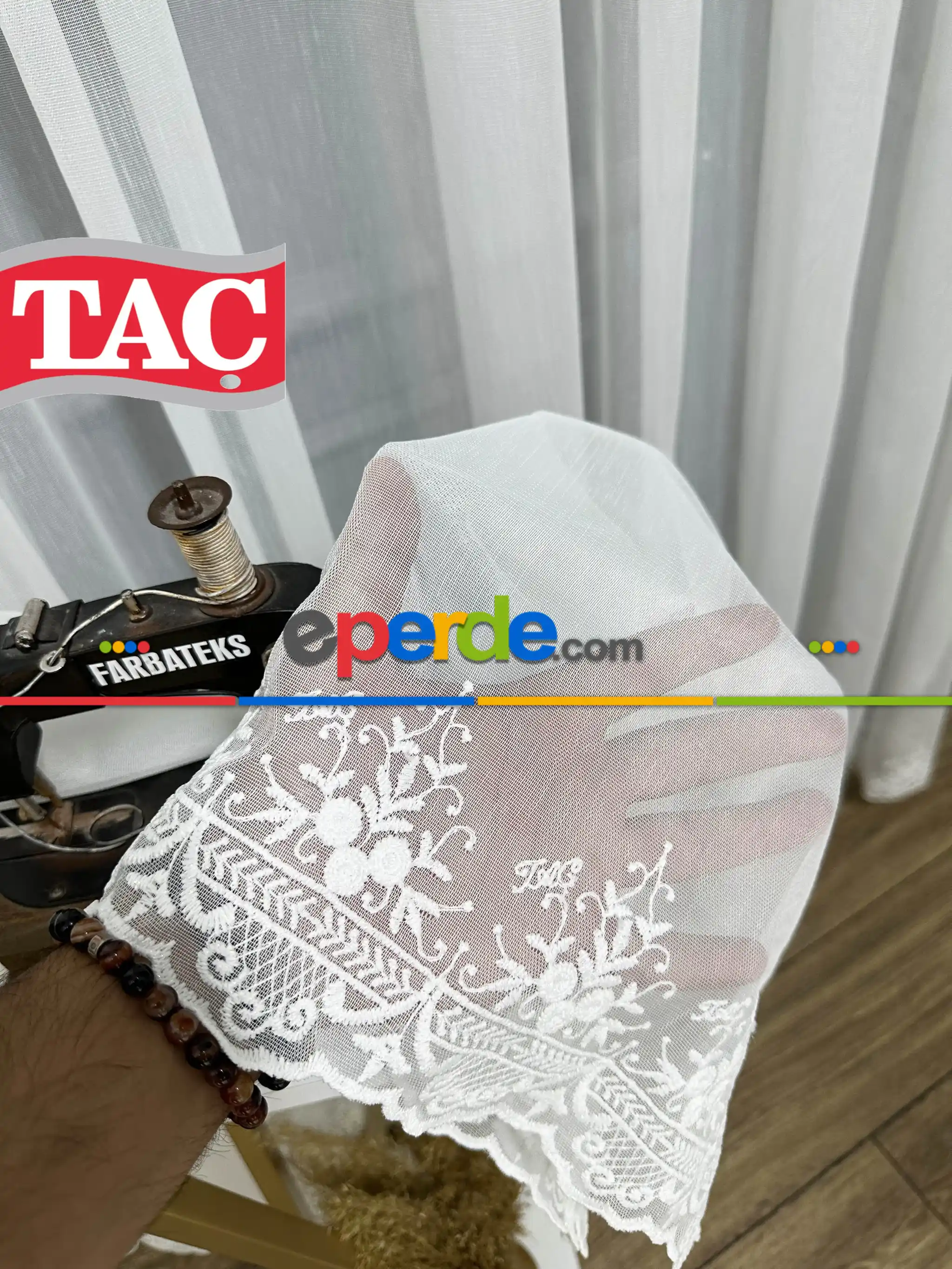 Yatak Odası - Taç Etek Topçuklu Ütü İstemez Alt İşlemeli Model Tül Perde » Eperde