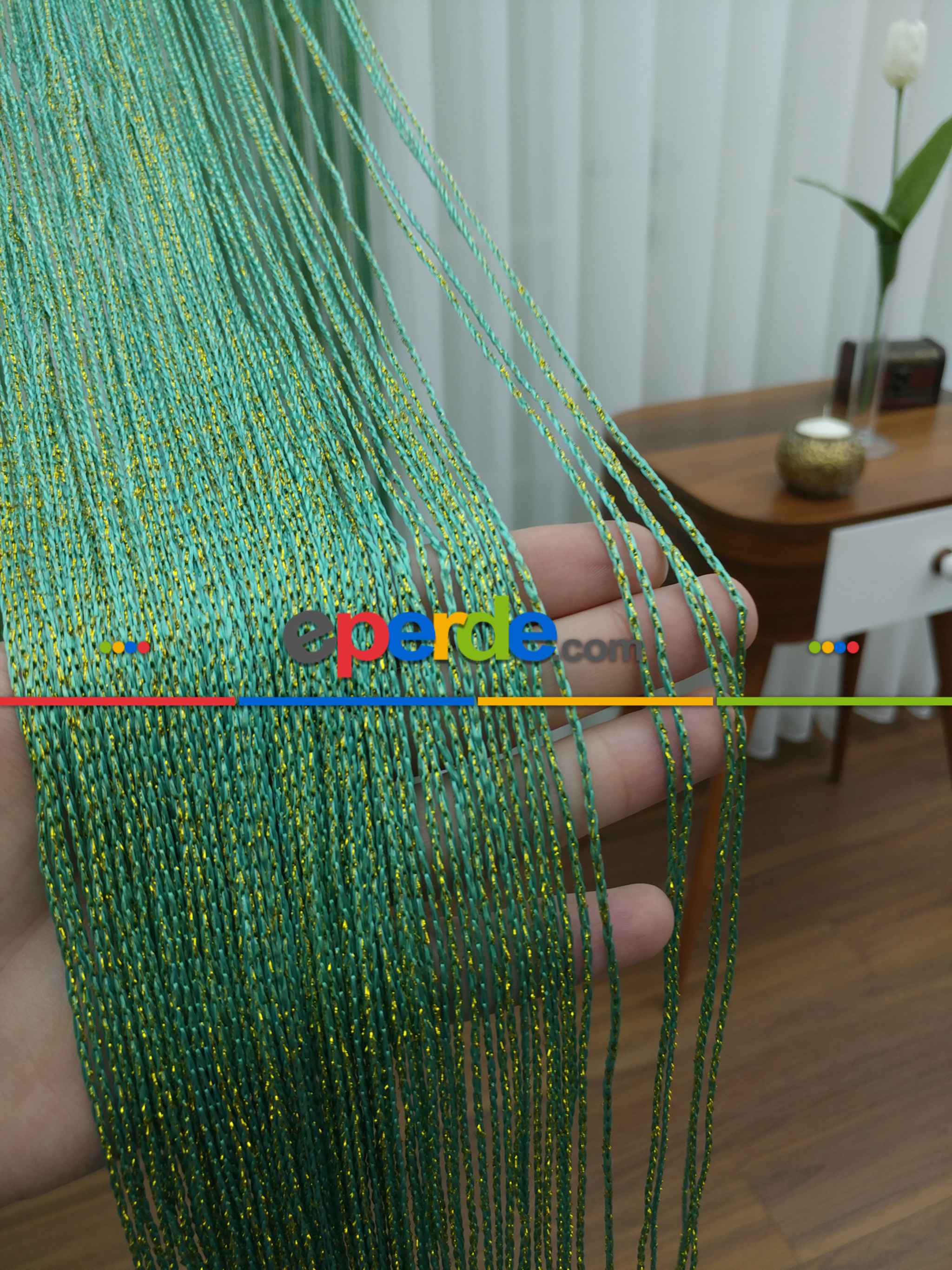 Yeşil ( Altın Simli ) - İp Perde Simli Seri- Yeşil-altın Simli