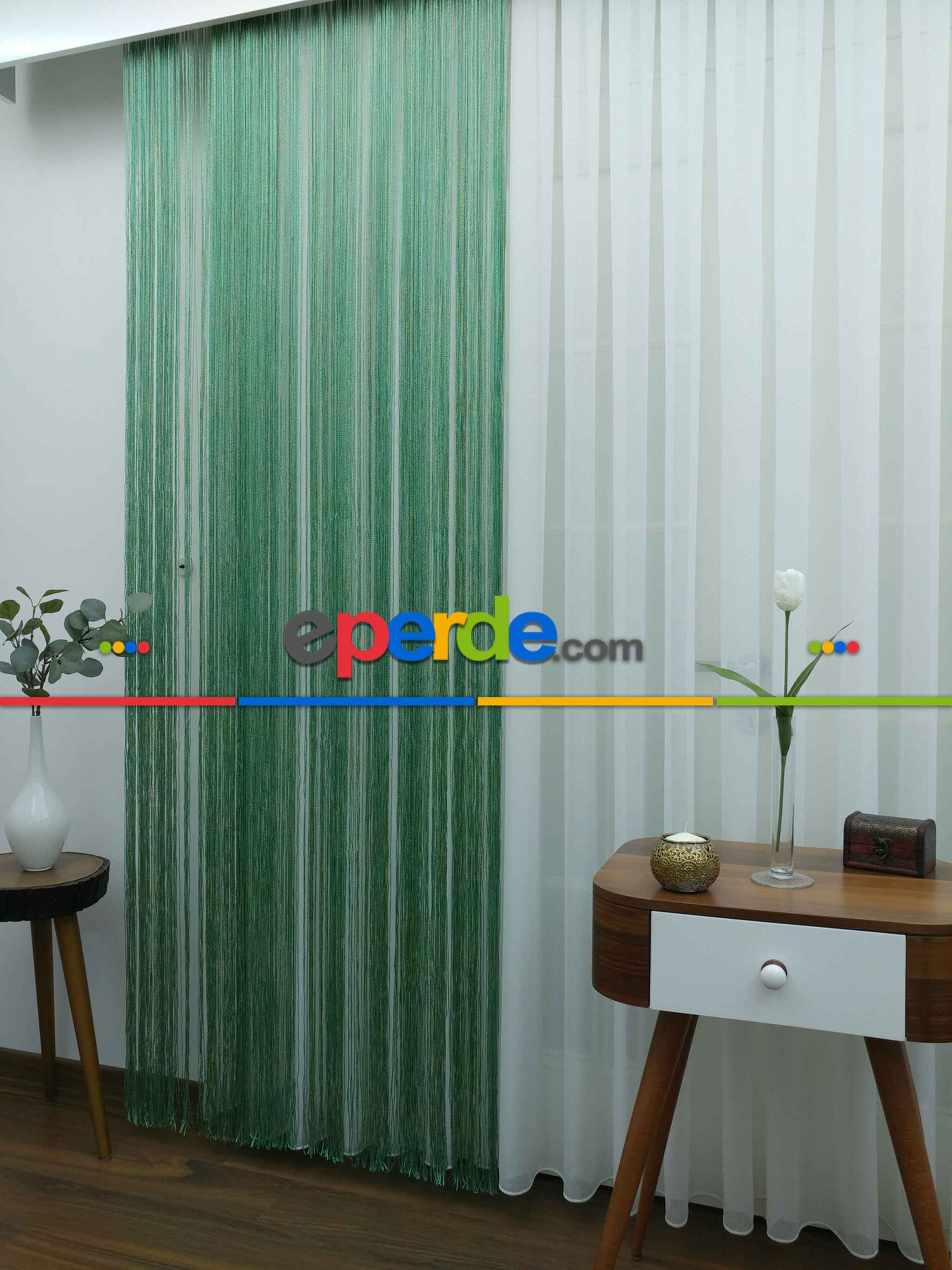 Yeşil ( Altın Simli ) - İp Perde Simli Seri- Yeşil-altın Simli Ödeme Seçenekleri