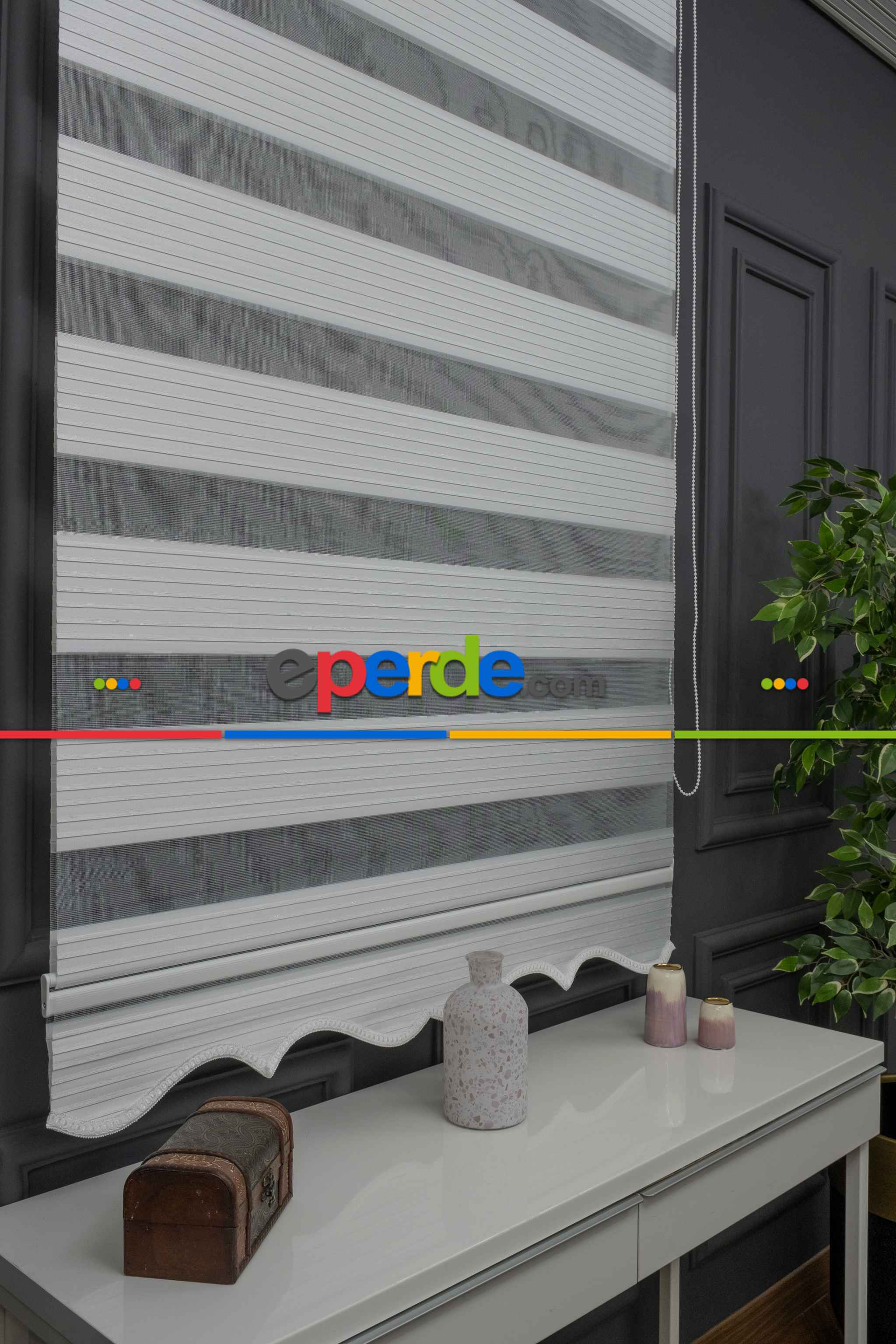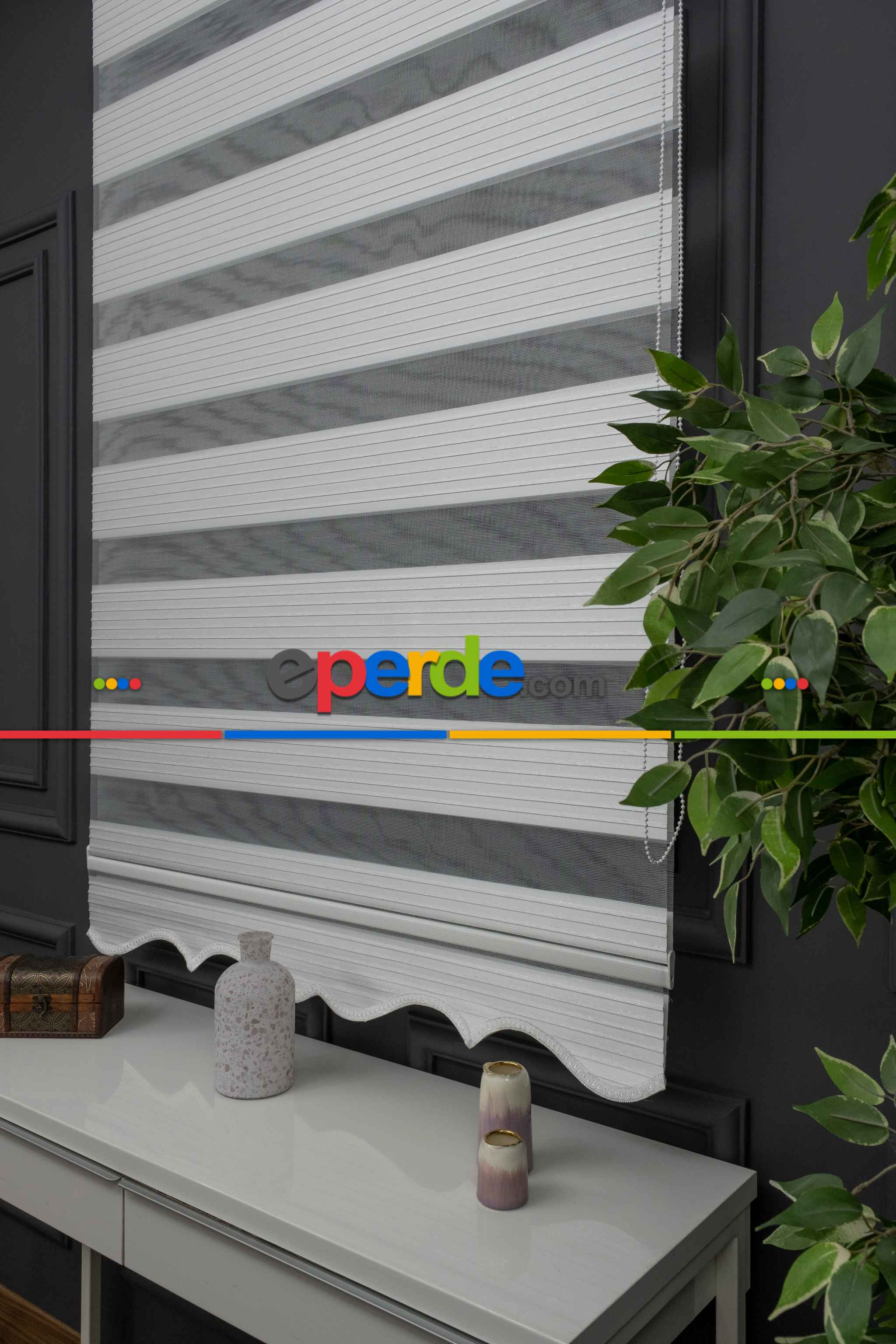 Zebra Perde - Beyaz Gümüş Simli Geniş Pileli Zebra Perde Ürün Açıklaması