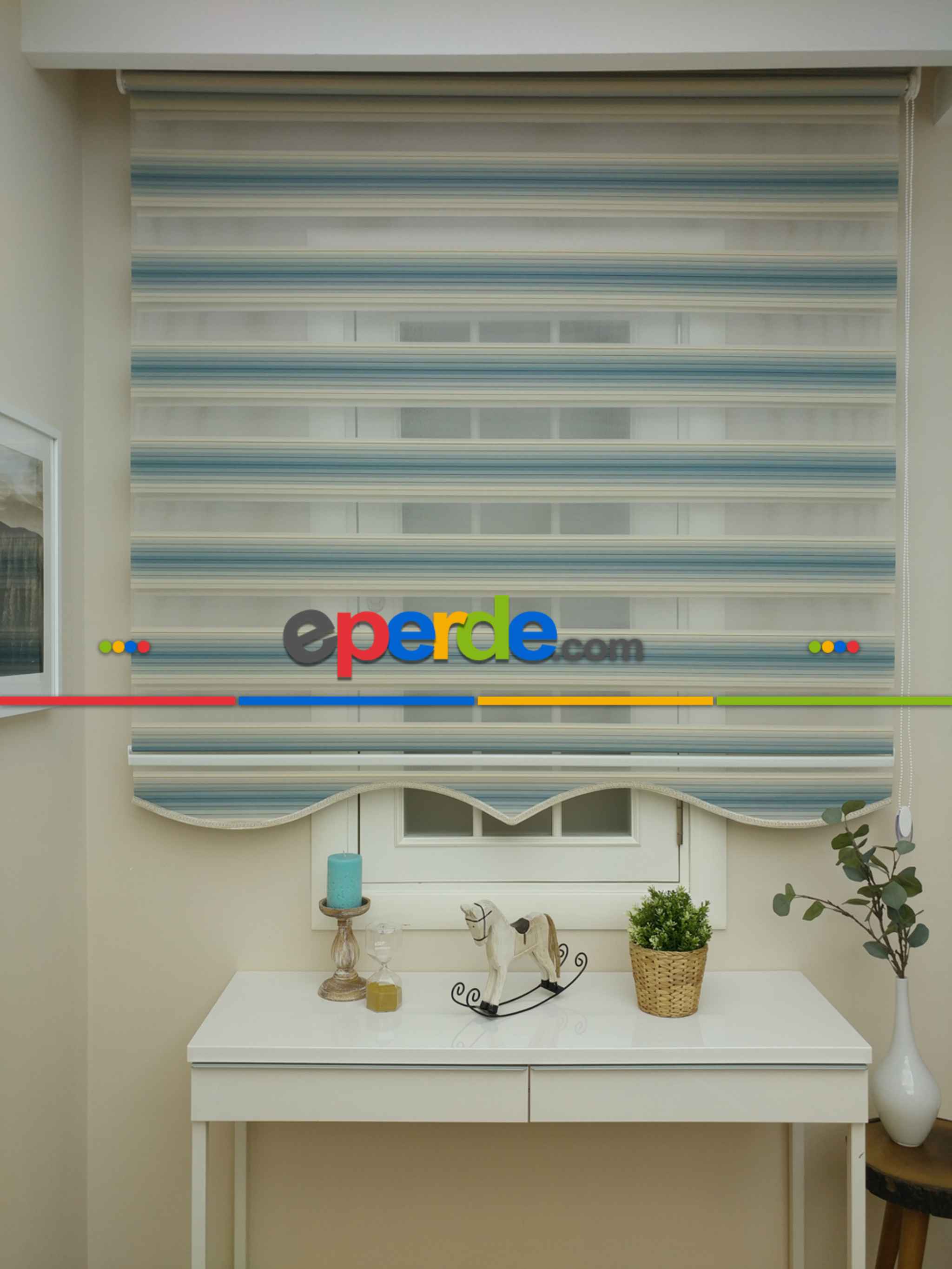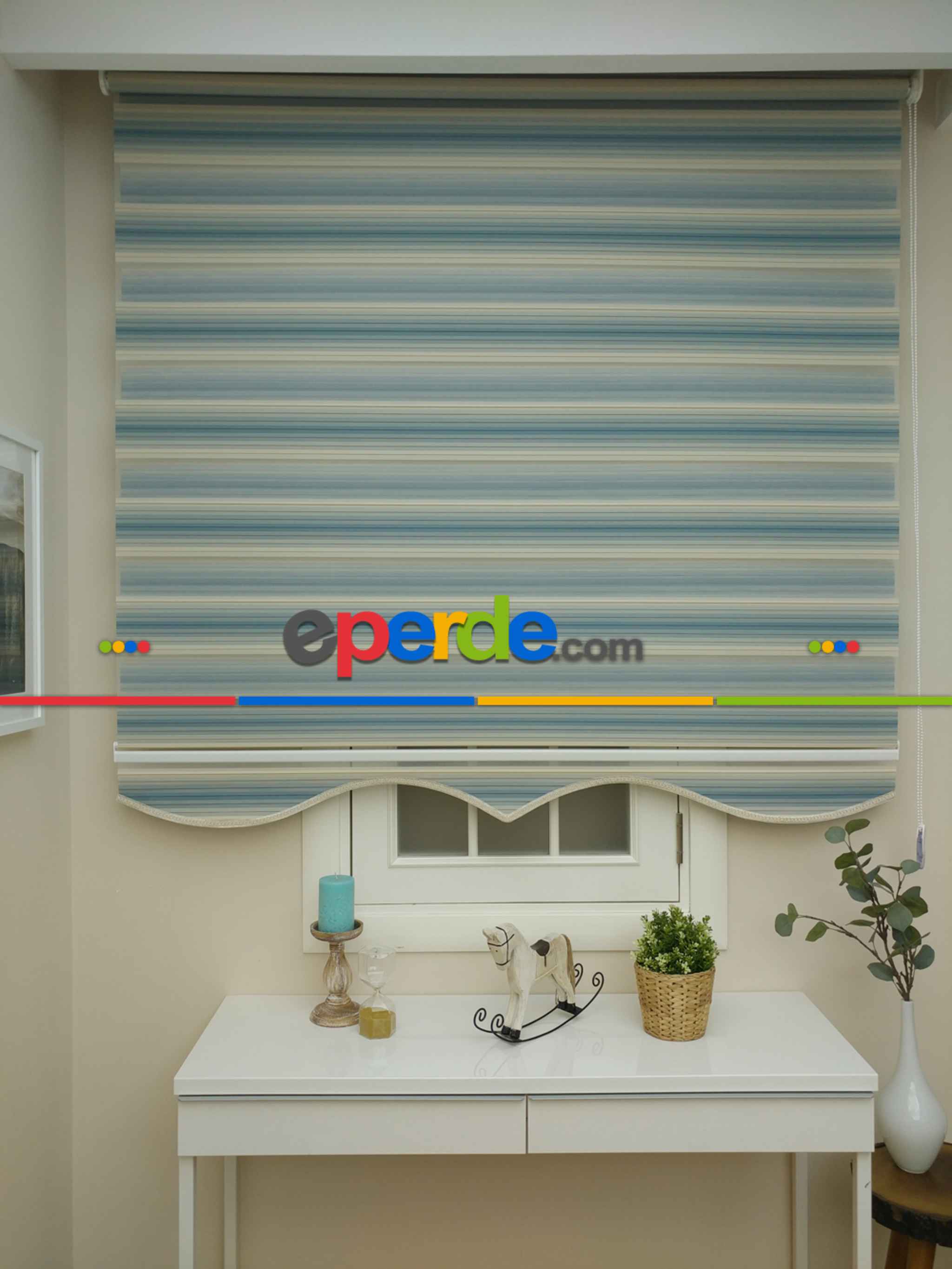 Zebra Perde - Degrade Renk Geçişli Pileli Zebra Perde- Mavi-bej-mavi Doymamış-mavi Grimsi Ürün Açıklaması