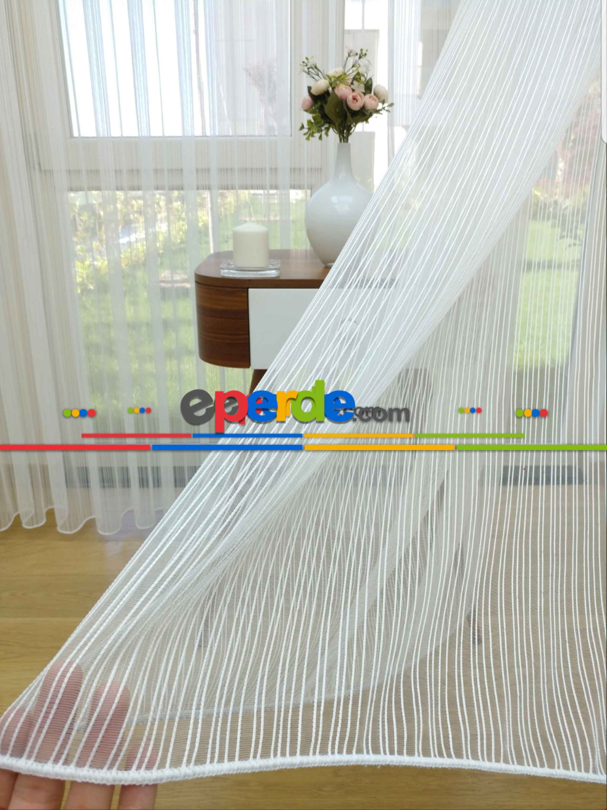Zincir Desen Yüksek Kaliteli İpek Zemin Tül Perde- Ekru - Kurşunlu Tül » Eperde